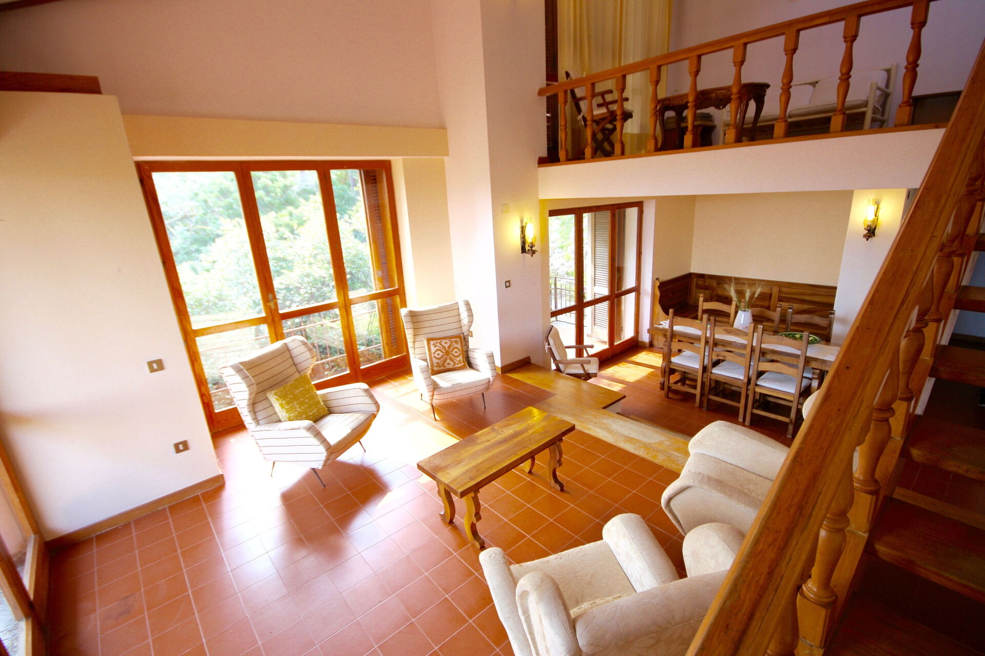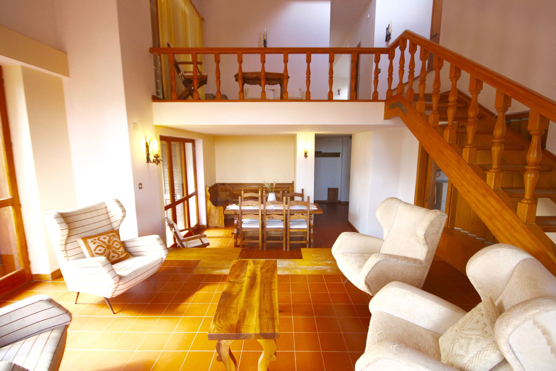 The Villa has a large kitchen which is connected with the living room to the veranda overlooking the sea. A double staircase leads to the bedroom and loft area that looks into the living area. There are 3 large bedrooms and 2 bathrooms.