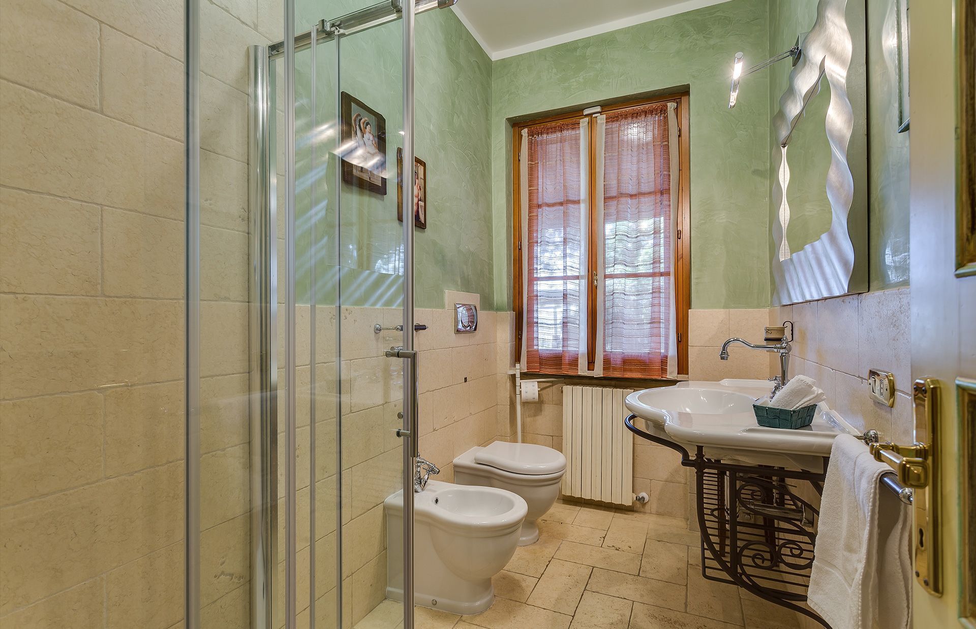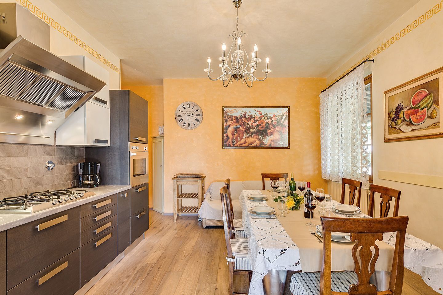On arrival we were greeted by our hosts, Lucia, Gabriele and their 5 year old daughter Caroline. They are delightful people, very respectful of our privacy and our needs and they were very ready to be of assistance. Our hosts’ English is somewhat limited, but they are eager to please and we managed everything without a problem. Lucia is an excellent cook and one day we asked her to cook a special “Tuscan” dinner for us. Despite our various allergies and dietary restrictions, she managed to create a fabulous feast. I strongly recommend that you try her cooking. It is better than that of many highly rated restaurants. I am a curious type and I initiated chats with Gabriele. He painted many of the paintings found in the villa and he has many interesting stories. He will not disturb you, if you wish to be left alone.
