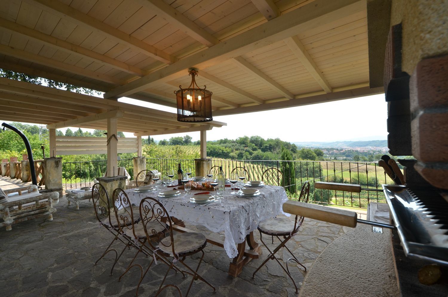 In the garden there is a barbecue and lovely wrought iron two gazebos furnished with table and chairs for dining al fresco whilst enjoying the essence of the Tuscan countryside.