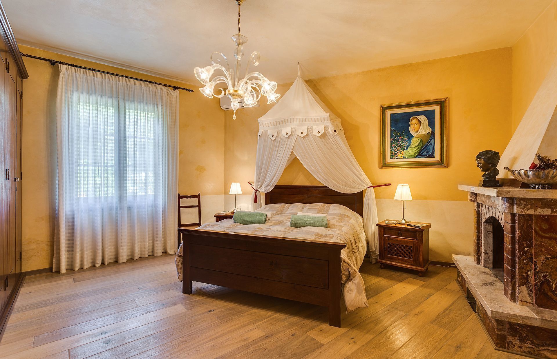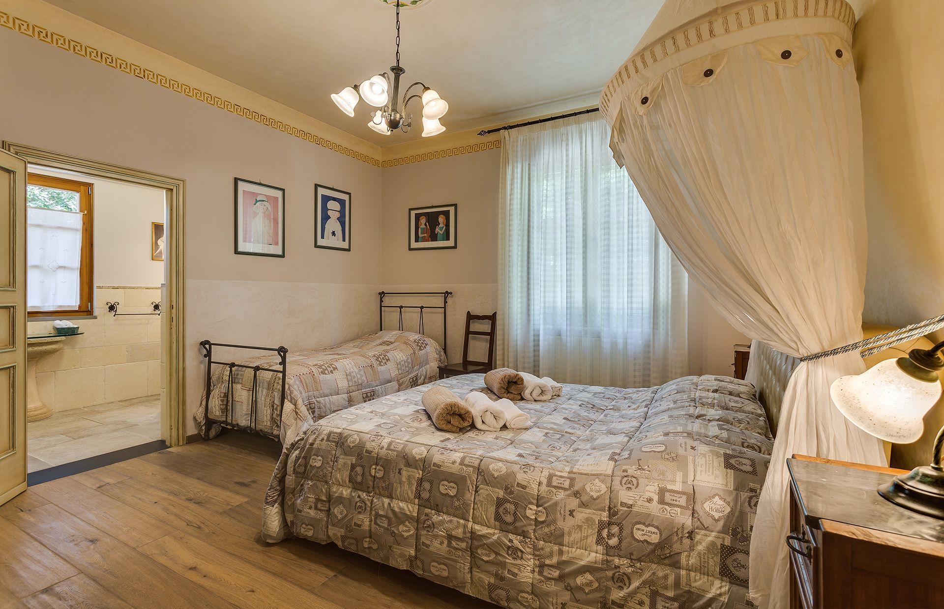 Villa Carolina (200 sqm) is comfortably furnished to a high standard in pretty classic style, with Florentine oak wood parquet floors, lovely Venetian stucco walls and many antique pieces throughout the villa creating a homely and inviting atmosphere.