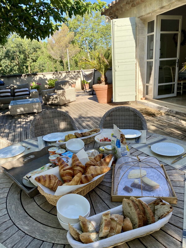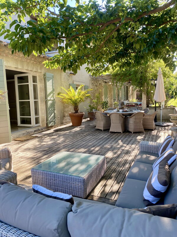 Mas "La Villebague", bygget i 1850, renoveret i 2012. I byen, 1 km fra bymidten. Til alene benyttelse: grund 700 m2 (indhegnet) med træer, pool med varme (5 x 12 m, 130 cm dyb, Sæsonbestemt tilgængelighed: 01.Mar. - 30.Okt.) med udvendige jalousier/ skodder. Poolhus med køleskab, bordtennis, terrasse (200 m2), havemøbler, grill. I huset: centralvarme. Skift af linned 1 gang ugentlig. Indkøbsservice mulig før ankomst. Tilkørsel (300 m natursti). Indkøbsforretning 800 m, restaurant, togstation "Avignon TGV" 21 km. Golfbane (18 hul) 10 km, tennis 800 m. Nærliggende attraktioner: Les Baux de Provence 11 km, Cité des Papes 23 km, Gordes 45 km, Marseille 88 km.