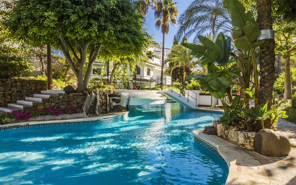 Smuk, hyggeligt flerfamiliehus "Golden Beach". 13 km fra centrum af Marbella, 23 km fra bymidten af Puerto Banus, i distriktet Elviria, 150 m fra havet, 150 m fra stranden, retning syd øst. Til medbenyttelse: stor have i forskellige niveauer med græsplæne, 2 swimming pools nyreformet (90 - 220 cm dyb, Sæsonbestemt tilgængelighed: 01.Jun. - 30.Sep. poolen åbningstider: 08:00-21:00). Børnepool, udendørs brus, offentlige parkeringspladser på vejen. Supermarked 800 m, indkøbscenter 900 m, restaurant, bar 300 m, bageri 900 m, café, ølhave 300 m, busstoppested "Residencia Tiempo Libre" 1 km. Golfbane (18 hul) 4 km. 24-timers overvågning.