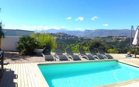 Moderne, smuk villa "Les Oliviers", på 2 etager, bygget i 2012. Ovenfor Nice Ouest, i bydelen St Pierre de Feric, rolig, solrige beliggenhed i en bydel, 8 km fra havet, 8 km fra stranden. Til alene benyttelse: grund, pool (6 x 4 m, 150 cm dyb, Sæsonbestemt tilgængelighed: 01.Jun. - 01.Sep.) med alarmanlæg. Bordtennis, terrasse, parkeringsplads (for 4 biler). Indkøbsforretning 4 km, fødevarebutik 1.3 km, supermarked 1.3 km, restaurant 1.2 km, bageri 1.3 km, busstoppested "Le Plateau" 10 m, banegård "Nice-Ville" 7 km, stenstrand "publique" 7 km. Golfbane (18 hul) 24 km, ridehal 1.9 km. Nærliggende attraktioner: Place Masséna 8 km, Promenade des Anglais 8 km, Vieux-Nice 9 km, Vieux-Port 10 km, Chateau de Nice 10 km. Vandrestier Parc National du Mercantour 54 km. Bemærk venligst: bil anbefales. Ejeren accepterer ikke nogen ungdomsgrupper. Nøgleoverrækkelsen finder sted på kontoret Interhome Nice, 6 km borte.