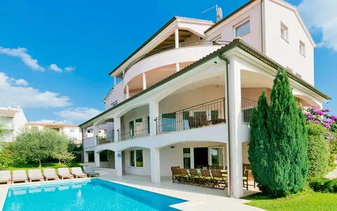 Štinjan 5 km fra Pula: Smuk villa "Carmen", på 4 etager. 3 km fra bymidten af Fažana, solrige beliggenhed, 1 km fra havet, 1 km fra stranden. Til alene benyttelse: grund 1'000 m2 (indhegnet), smuk have med græsplane, pool med varme (40 m2, 140 cm dyb, Sæsonbestemt tilgængelighed: 09.Mar. - 21.Nov.) med indetrappe og salt-elektrolys. Formet pool. Udendørs brus, grill, legeplads (rutschebane, gynge). I huset: adgang til internet, fitnessrum, billiard, vaskemaskine. Parkeringsplads (for 4 biler) ved huset på grunden. Indkøbsforretning 350 m, indkøbscenter 4 km, restaurant, busstoppested 350 m, kiselstenstrand 1 km, klippestrand 1 km. Golfbane (18 hul) 4.5 km, tennis 1 km, ridehal 1.5 km, vandrestier fra huset 100 m, cykelvej 150 m. Nærliggende attraktioner: NP Brijuni 4.5 km, Amphitheater 6 km. Ejeren accepterer ikke nogen ungdomsgrupper. Bemærk venligst: flyveplads 15 km fra huset. Pool med varme (ekstra). Ingen kæledyr tilladt.