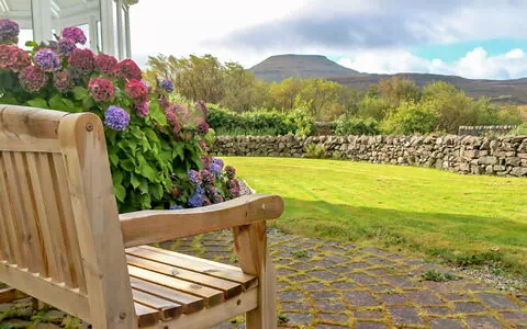 "Dunvegan House", 8-værelse-feriehytte. Meget smagfuld og hyggeligt indrettet: salon med TV og DVD. Indgang. Spisestue. Store køkken (6 kogeplader, opvaskemaskine, fryser) med spisebord. Brus/WC. Overetage: stor, 2 dobbeltværelse, alle værelser med 1 dobbeltseng, bad/brus/WC og TV. 1 dobbeltværelse med 1 dobbeltseng og TV. 1 værelse med 2 senge. Bad/brus/WC. 2. Overetage: 2 dobbeltværelse, alle værelser med 1 dobbeltseng og TV. Bad/brus/WC. Opvarming. Meget flotte panoramaudsigt over havet og landskabet. Til benyttelse: vaskemaskine, tørretumbler, højstol, barneseng til 2 år, hårtørrer. Internet (trådløs LAN [WLAN], gratis). E-ladestation. Bemærk venligst: velegnet for familier. TV kun EN. HI-31102-P