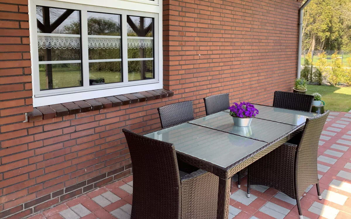 4-værelse-lejlighed 120 m2, i stueetagen. Hyggeligt indrettet: stue/spisestue 32 m2 med sat-TV (fladskærms TV). 1 værelse 14 m2 med 1 dobbeltseng (2 x 90 cm, længde 200 cm), brus/WC og sat-TV (fladskærms TV). 1 værelse 13 m2 med 1 dobbeltseng (2 x 90 cm, længde 200 cm). 1 værelse 14 m2 med 3 senge (90 cm, længde 200 cm). Store køkken (ovn, opvaskemaskine, 4 keramiske kogeplader, mikroovn, fryser, elektrisk kaffemaskine) med spisebord. Brus/WC. Terrasse overdækket. Havemøbler, grill, liggestole (2). Til benyttelse: vaskemaskine. Internet (trådløs LAN [WLAN], gratis). Bemærk venligst: ikke-ryger lejlighed. Maksimum 2 husdyr/hunde tilladt. Brandalarm.