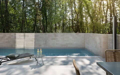 Moderne dobbelthus "Oliva 1", på 4 etager, bygget i 2017. I lille byen Križine, 4 km fra bymidten af Umag, rolig, solrige beliggenhed, fra havet, 200 m fra stranden. Til medbenyttelse: grund 2'000 m2 (indhegnet), smuk have med græsplæne og planter. Legeplads (rutschebane, gynge). Til alene benyttelse: grund 100 m2 (indhegnet), pool kantet, med varme (8 x 4 m, 140 cm dyb, Sæsonbestemt tilgængelighed: 01.Jan. - 31.Dec.) med indetrappe. Udendørs brus. I huset: adgang til internet, billiard, bordfodbold, centralvarme, vaskemaskine, tørretumbler. Parkeringsplads (for 2 biler) ved huset på grunden. E-ladestation. Indkøbsforretning 300 m, supermarked 3 km, restaurant 300 m, busstoppested 400 m, kiselstenstrand, klippestrand 200 m. Golfbane (18 hul) 12 km, tennis 4 km, ridehal 5 km, vandrestier fra huset 100 m, cykelvej 150 m. Grupper af teenagere er ikke tilladt. Pool med varme (ekstra).