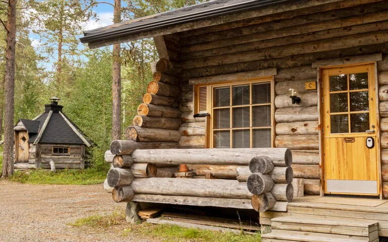 Silverlog semi-detached house, built in 2002, kitchen-living room, bedroom with double bed, loft (steep stairs) with two single beds, in the loft there is also an alcove with with two low beds (mattresses), sauna (electric stove), shower room, covered porch.