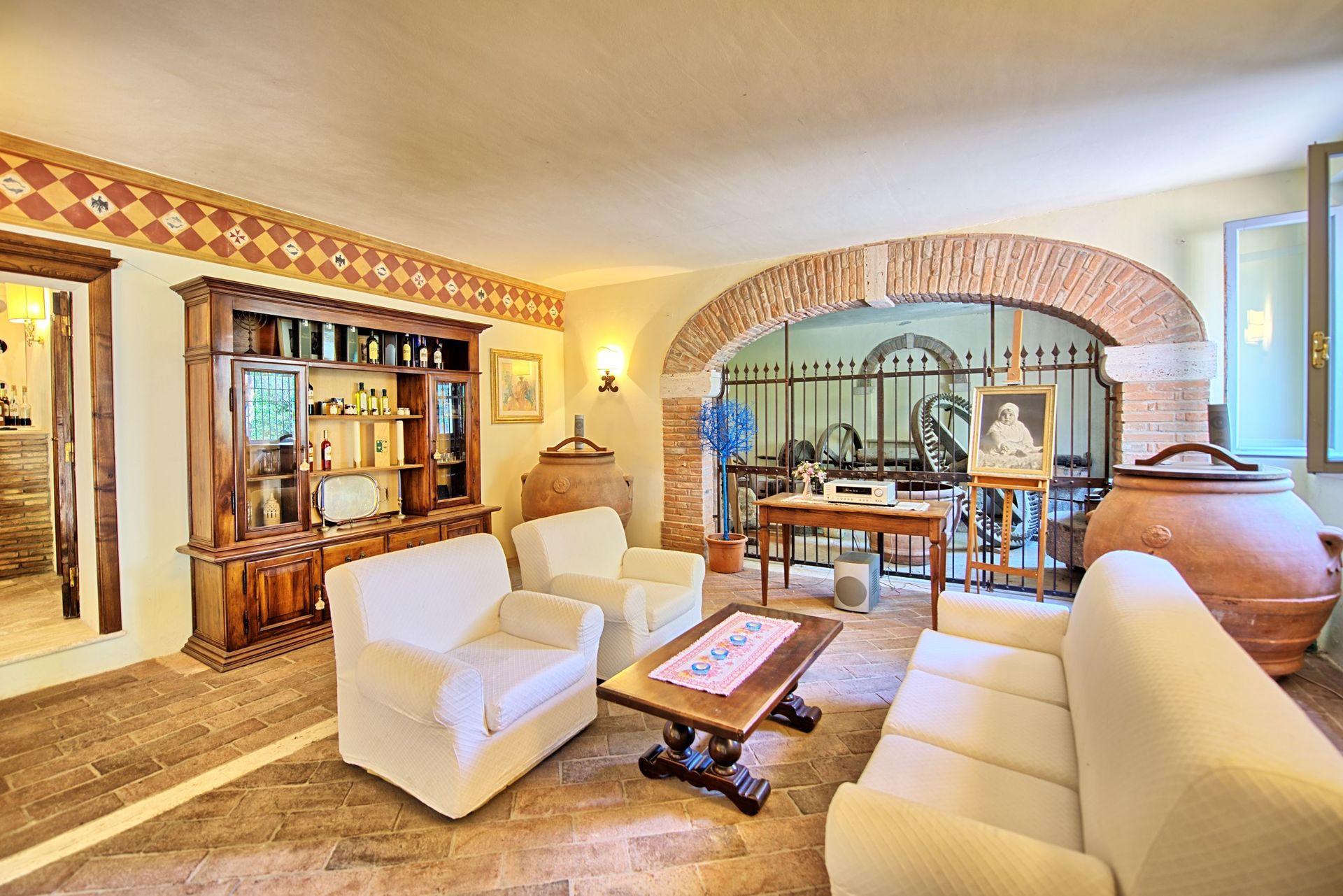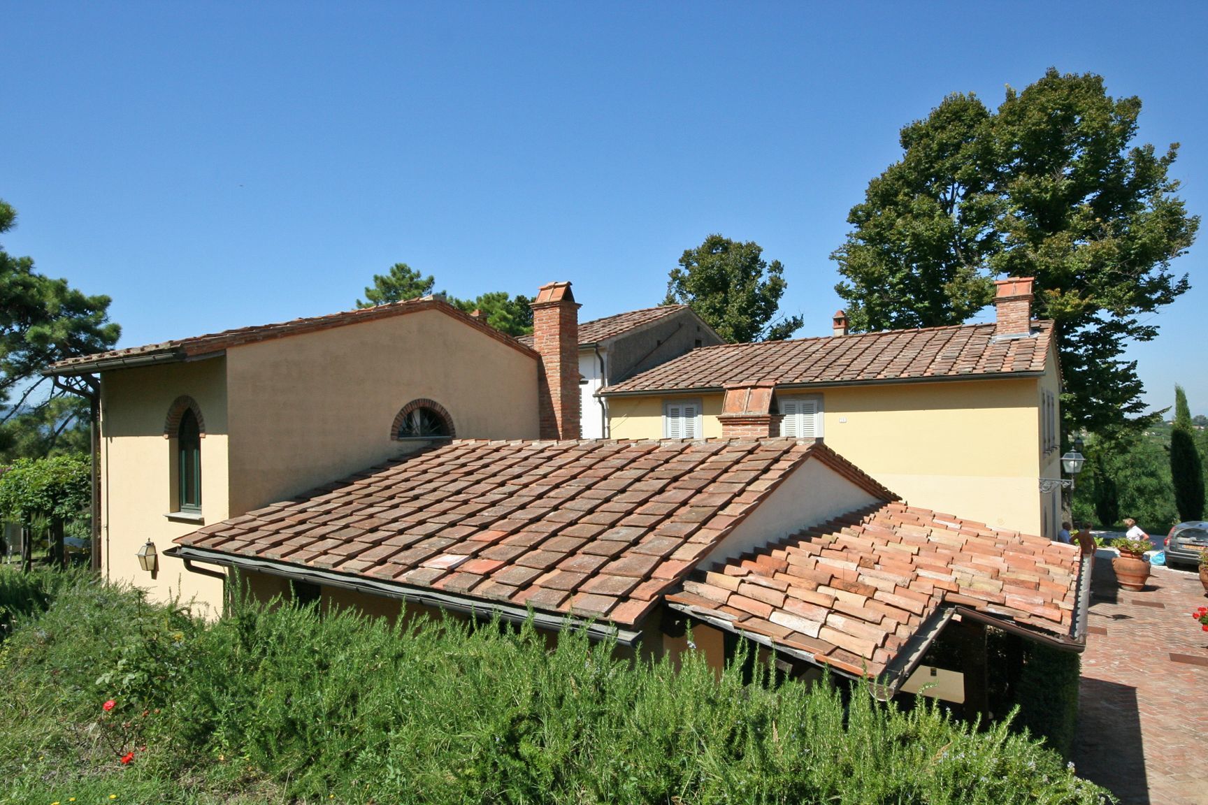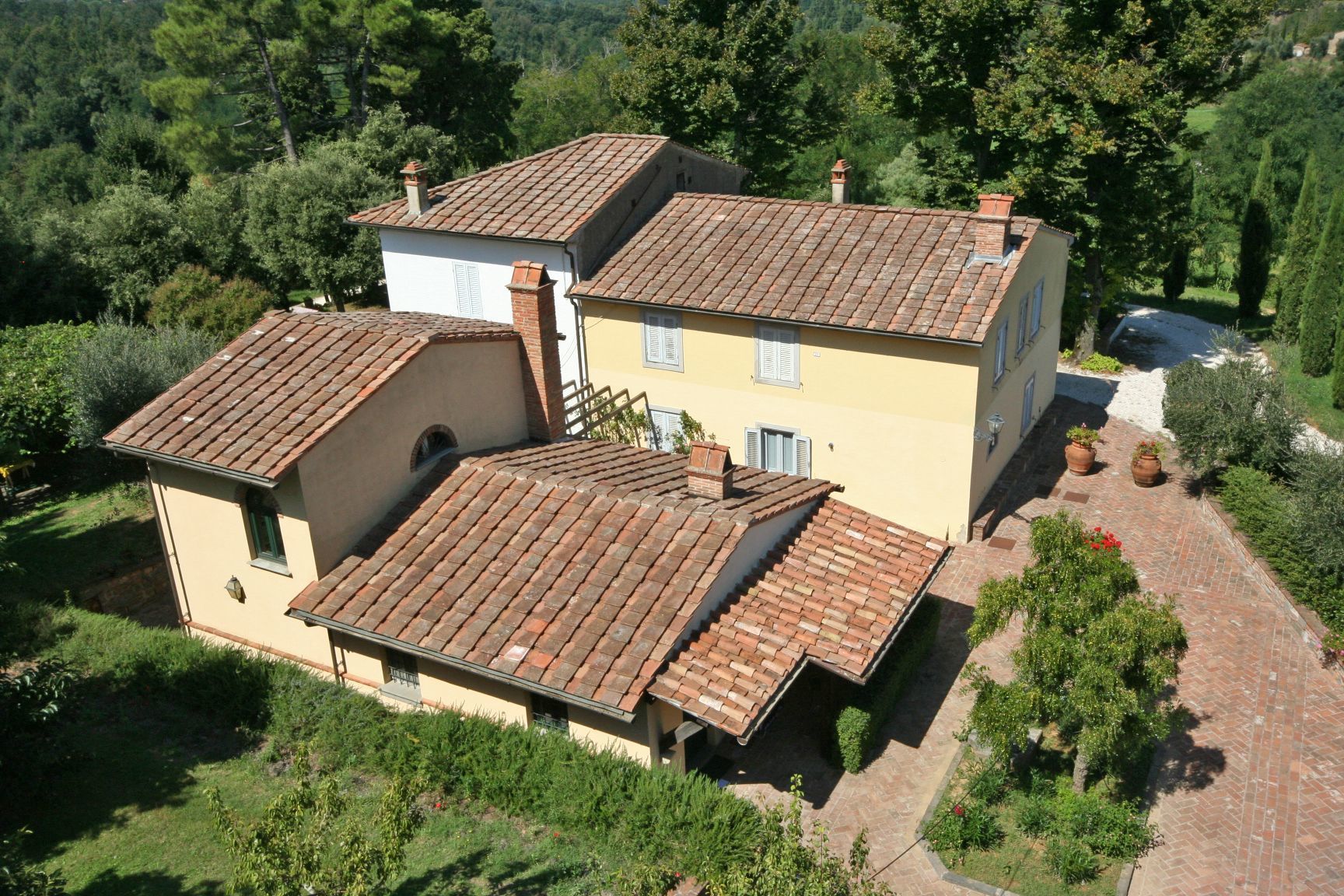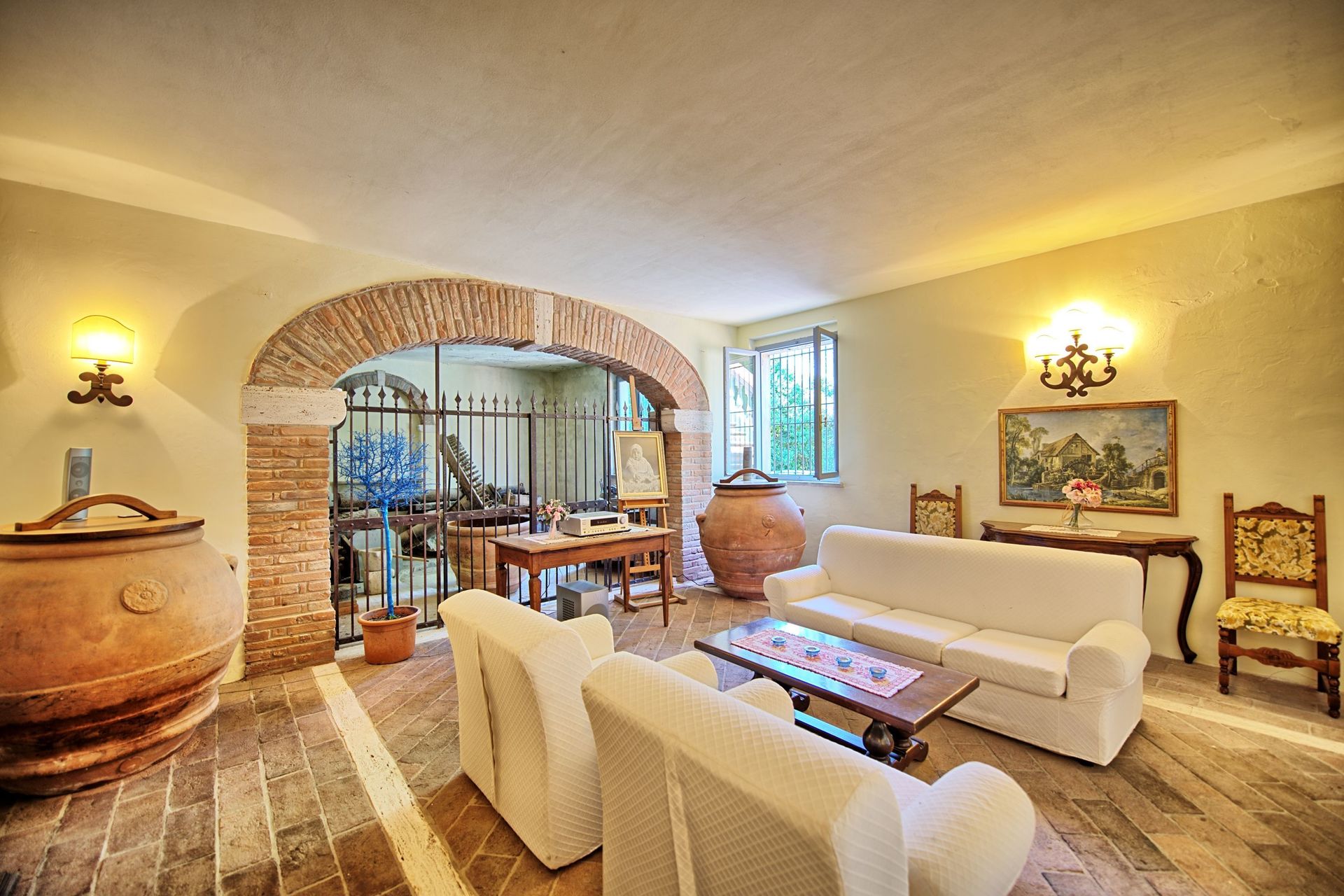 Ground floor (access through 4 steps): living-room with fireplace and large dining table, kitchen (oven), double bedroom, twin-bedded room, bathroom with shower. The bedrooms are provided with air conditioning.