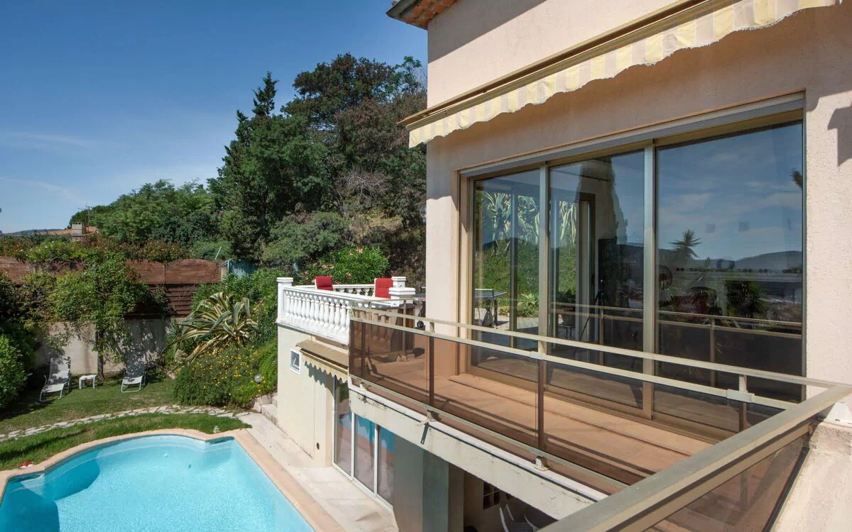 Beautiful terraced house "Les Termes", 3 storeys. 1.5 km from the centre of Mandelieu, in a quiet, sunny position on top of a hill, in the residential district, 4 km from the sea, 4 km from the beach. Private: swimming pool (01.04.-01.10.). Table tennis. In the house: table football. Narrow motor access to the house. Stepped path (40 steps) to the house. Parking on the premises, single garage. Shop 1.5 km, supermarket 2.5 km, restaurant 1.5 km, public bathing area 4 km. Golf course 3 km. Please note: car recommended.