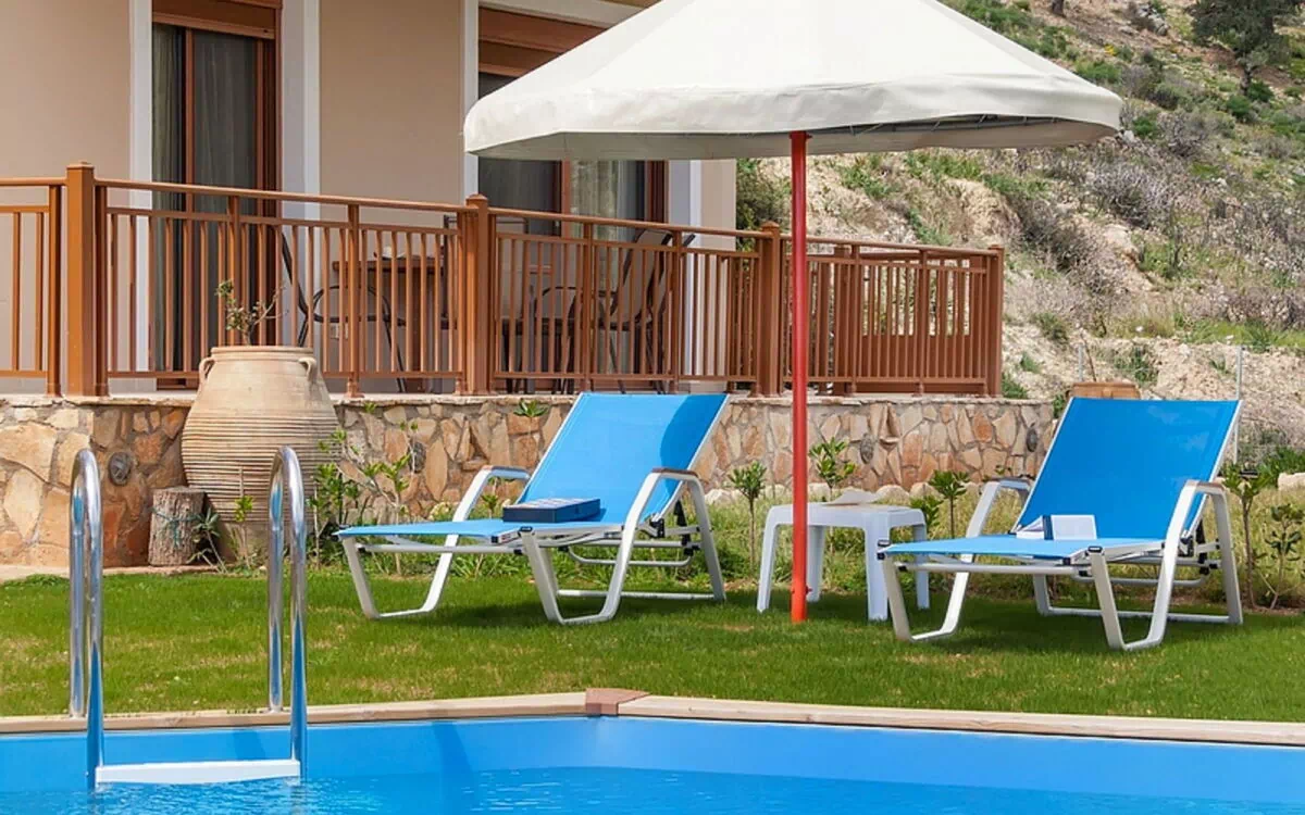 "Fournou Lago Nikos", 3-værelse-villa 100 m2 på 2 etager. Rummelig og lys, komfortabelt og pæn indrettet: åben stor stue/spisestue med 1 sovesofa, åben kamin, spisebord og sat-TV (fladskærms TV), radio, cd og DVD. Udgang til have, til pool. Åbent køkken (ovn, 4 keramiske kogeplader, mikroovn, elektrisk kaffemaskine, Kapsler til kaffemasin (Nespresso) ekstra). Brus/WC. Klimaanlæg. Overetage: (trappe uden gelænder) 1 værelse med 1 dobbeltseng og sat-TV (fladskærms TV). Udgang til altan. 1 dobbeltværelse med 2 senge og sat-TV (fladskærms TV). Udgang til altan. Bad/WC. Klimaanlæg. Stor altan. Grill, siddeplads. Flotte udsigt over havet og landskabet. Til benyttelse: vaskemaskine, strygejern hårtørrer. Internet (trådløs LAN [WLAN], gratis). 1041 K910 0289 3801