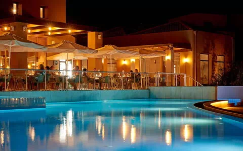 Moderne, komfortabelt resort "Village Heights Resort", på 2 etager, ensidig tilbygget, bygget i 2006. I bydelen Ano Hersonissos, rolig, solrige beliggenhed, 6.3 km fra havet, 6.3 km fra stranden. Til medbenyttelse: stor, velplejet have med græsplæne og træer, pool kantet (250 m2, Sæsonbestemt tilgængelighed: 15.Feb. - 12.Dec.). Børnepool, tennis, legeplads. I anlægget: reception, restaurant, bar, morgenmadsrum, opholdsrum, sauna (ekstra). Massage (ekstra). Bordtennis, billiard, indkøbsmulighed. Skift af linned 2 gang ugentlig. Udskiftning af håndklæder daglig. Rengøring af lejlighed 6 gang ugentlig. Morgenmad og halvpension muligt (ekstra). Parkeringsplads ved huset. Fødevarebutik 3.3 km, supermarked 3.3 km, restaurant 3.3 km, bar 3.3 km, bageri 3.3 km, café 3.3 km, sandstrand "Hersonissos" 6.3 km. Golfbane (18 hul) 3.8 km, ridehal 4.4 km. Nærliggende attraktioner: Labyrinth Park 850 m, Lychnostatis Open Air Museum 9.6 km, Aquaworld Aquarium 5.9 km, CretAquarium Thalassokosmos 14 km, Dinosauria Park 12 km, Acqua Plus Waterpark 2.8 km. Bemærk venligst: bil anbefales. Babyudstyr på forespørgsel (inkl.).