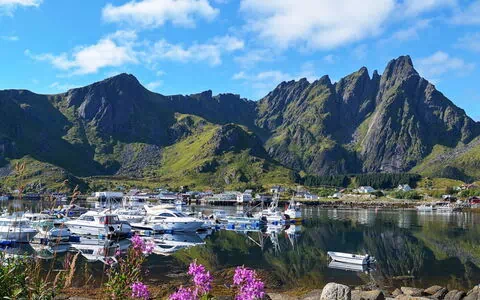 Lofoten. Good fishing conditions and you can fish with a rod from shore