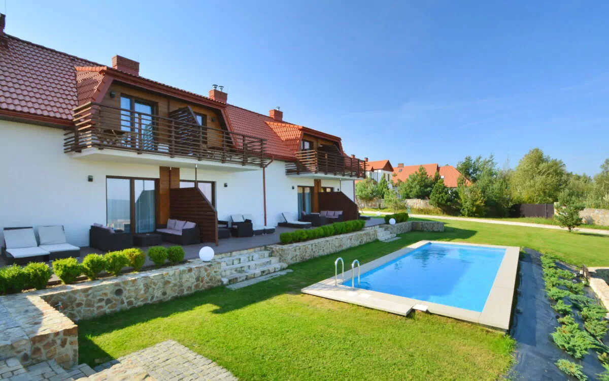 Apartment block "Krajno Pierwsze", built in 2015. In a quiet, sunny position, directly by the skiing area. For shared use: property 4'000 m2 (fenced), swimming pool heated (3 x 10 m, 01.04.-31.10.). Barbecue house, children's playground. In the complex: reception, whirlpool, storage room for skis, bicycles available (extra). Room cleaning daily (included). Breakfast possible (extra). Parking at the house on the premises. Shop 2 km, grocery 200 m, supermarket 2 km, restaurant, bus stop 500 m, railway station 17 km, public bathing area 5 km. Riding stable 10 km, ski school 900 m. Nearby attractions: Świętokrzyski Park Narodowy 8.7 km, Dąb Bartek 16 km, Rezerwat Przyrody Kadzielnia 16 km, Pałac Biskupów Krakowskich 16 km, Ośrodek narciarski 1.7 km. Well-known lakes can easily be reached: Wilków 3 km. Hiking paths: Łysica 2 km. Please note: the photograph shows a typical example. There are more similar properties for rent in this same residence. Property ref. PL2600.100.1-2 is situated on the same property. Outdoor Jacuzzi open all year (included) and Ruska Bania (extra charge). For guests of the object 10% discount on ski passes Sabat Krajno.