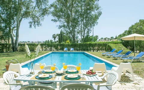 Feriehusen Resort "Golf" ligger på en præstigiøs golfbane i Alvor, Portugal, og tilbyder et ideelt tilflugtssted for gæster, der søger ro og fritidsaktiviteter i hjertet af Algarve. Ejendommen omfatter et stort privat område på 1.500 m² med fuldstændig indhegning, frodig græsplæne og modne træer. Svømmepølen måler 15 x 6 meter med en dybde på 160 til 200 centimeter og er tilgængelig hele året rundt fra 1. januar til 31. december. En tennisbane ligger blot 150 meter fra ejendommen, og den omkringliggende 18-hullers golfbane ligger praktisk talt ved døren.