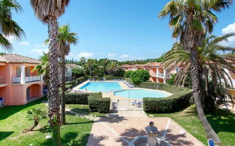 Resort "La Palmeraie", på 2 etager. 65 lejligheder i bygningen. Nedenunder Grimaud, 3 km fra bymidten af Grimaud, 10 km fra centrum af Saint Tropez, 80 km fra bymidten af Cannes, 4 km fra havet, 4 km fra stranden. Til medbenyttelse: grund (indhegnet) med græsplæne og planter, pool med varme (12 x 25 m, Sæsonbestemt tilgængelighed: 15.Apr. - 15.Okt.). Børnepool, petanque, terrasse. I anlægget: reception, vaskemaskine (til medbenyttelse, ekstra). Parkeringsplads (begrænset antal) på grunden. Supermarked 2 km, restaurant 50 m. Bemærk venligst: residence med elektriske porte. Ferieboligen kan variere i boligareal, plantegning, udstyr og møbler.