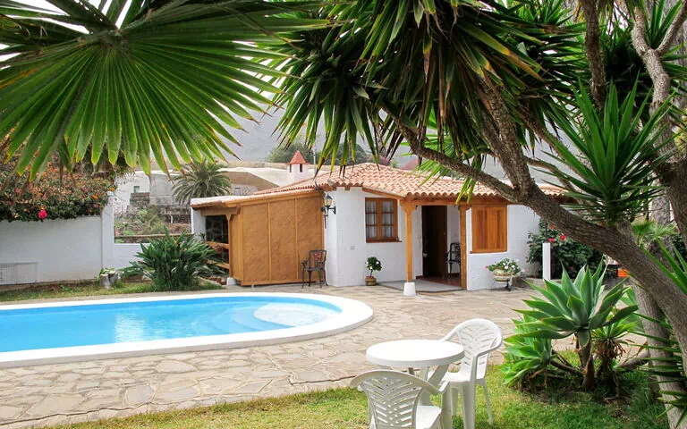 Smuk resort "El Castillo". 1 km fra bymidten af Buenavista, ved bykanten, 17 km fra centrum af Icod de los Vinos, 39 km fra bymidten af Puerto de la Cruz, 2 km fra havet. Til medbenyttelse: grund 12'000 m2 (indhegnet), velplejet have med planter og træer, frugthave, pool (9 x 3 m, Sæsonbestemt tilgængelighed: 01.Jan. - 31.Dec.). I huset: vaskemaskine, tørretumbler (til medbenyttelse). Parkeringsplads på grunden. Indkøbsforretning 1 km, sandstrand 6 km kiselstenstrand 2 km, pool 2 km. Golfbane 1.7 km.
