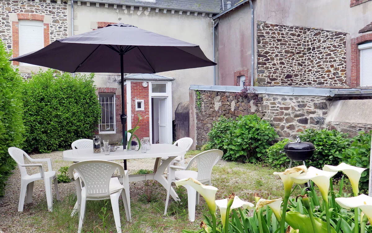 "Le Jardin du Bourg", 4-værelse-hus 160 m2 på 3 etager. Emner egnet for 6 voksne + 2 børn. Rummelig, komfortabelt og smagfuld indrettet: stue/spisestue med åben kamin (kun til dekoration), spisebord og TV (fladskærms TV), DVD. Lille køkken (ovn, opvaskemaskine, 4 Induktionskomfur, Brødrister, kedel, mikroovn, fryser, elektrisk kaffemaskine). Særskilt toilet. Overetage: 1 værelse med 1 fransk seng (140 cm, længde 190 cm). Bad/WC. 2. Overetage: 1 værelse med 1 fransk seng (140 cm, længde 190 cm). 1 værelse med 4 senge (90 cm, længde 190 cm). El-opvarming. Trægulve. Terrasse. Havemøbler, grill (bevægelig), liggestole (2). Til benyttelse: vaskemaskine, tørretumbler, strygejern barneseng, hårtørrer. Internet (trådløs LAN [WLAN], gratis). Bemærk venligst: ikke-ryger hus. Brandalarm.