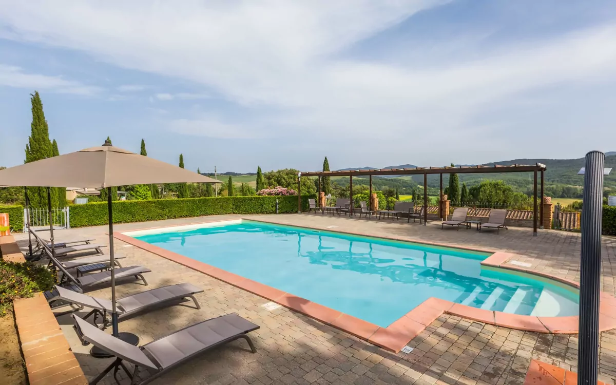 Resort "Girasole". 5 lejligheder i bygningen. 8 km fra bymidten af Montecatini Val di Cecina, 2 km fra centrum af Ponteginori, 6 km fra bymidten af Saline di Volterra, på en bakke, 27 km fra havet. Til medbenyttelse: grund 2 ha (indhegnet), velplejet have i forskellige niveauer græsplæne og træer, pool (12 x 6 m, 150 - 150 cm dyb, Sæsonbestemt tilgængelighed: 15.Maj. - 30.Sep.). Udendørs brus, grill, Underholdning af poolen af ejeren/gartneren. Skift af linned (yderlige ekstras). Udskiftning af håndklæder (yderlige ekstras). Parkeringsplads på grunden. Supermarked 2 km, restaurant 800 m, bageri 2 km, togstation "Ponteginori" 2.5 km, sandstrand "Marina di Cecina" 27 km, svømmehal 24 km. Nærliggende attraktioner: San Gimignano 45 km, Pisa 75 km, Firenze 100 km.