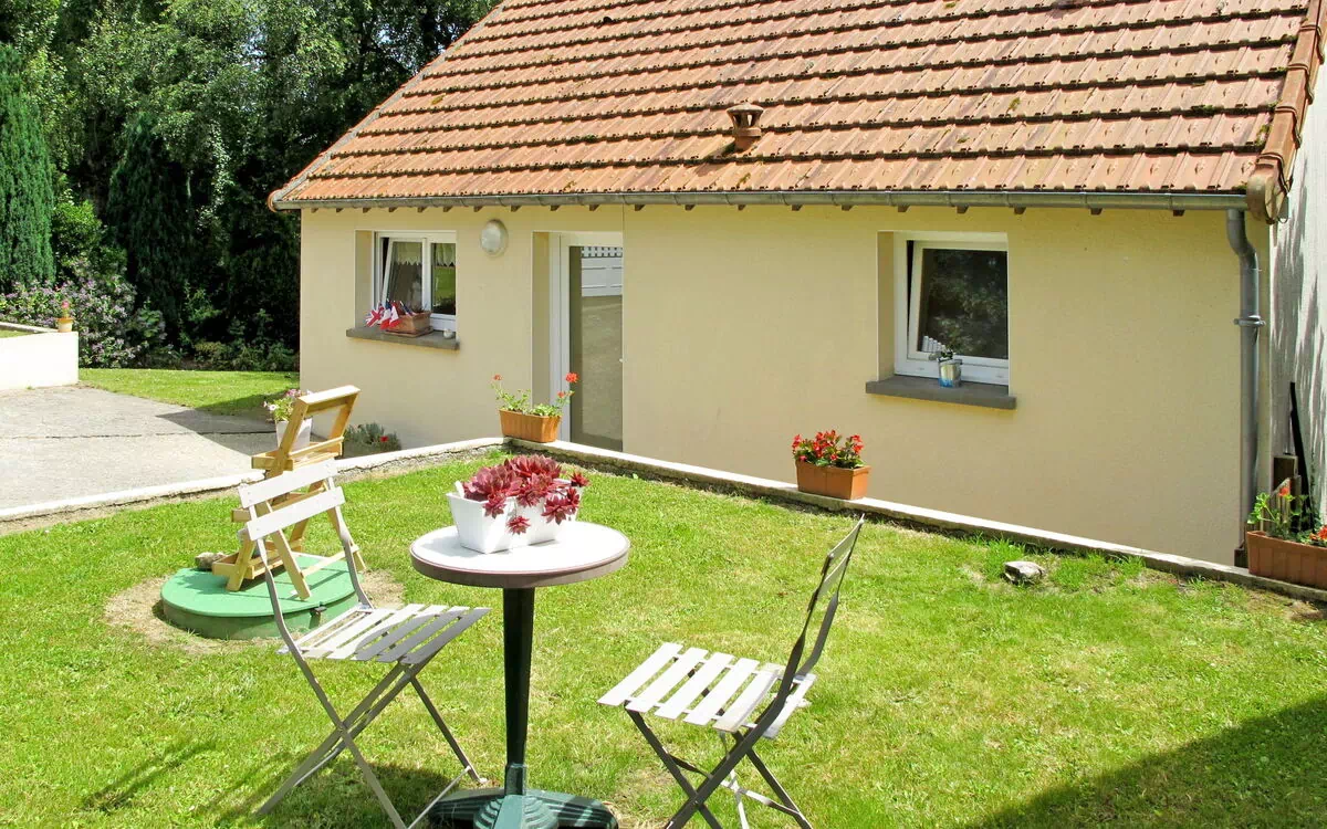 "de Beaumont", 3-værelse-hus 48 m2 på 2 etager. Hensigtsmæssig indrettet: stue/spisestue med spisebord og sat-TV. Udgang til terrasse. 1 værelse med 1 fransk seng (160 cm, længde 200 cm). Åbent køkken (ovn, opvaskemaskine, 4 gasblus, Brødrister, kedel, mikroovn, elektrisk kaffemaskine). Brus, særskilt toilet. Tagetage: 1 skrå, åbent værelse med tagvindue med 2 senge. El-opvarming. Terrasse delvis overdækket. Havemøbler, grill (bevægelig). Til benyttelse: vaskemaskine, højstol, barneseng. Internet (trådløs LAN [WLAN], gratis). Bemærk venligst: ikke-ryger hus. Maksimum 2 husdyr/hunde tilladt.