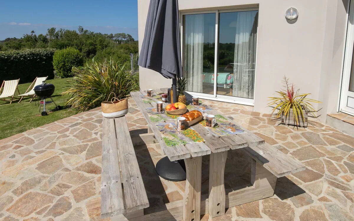 "Saint Hernot", 6-værelse-hus 140 m2 på 2 etager. Komfortabelt og pæn indrettet: stue/spisestue med spisebord, TV og fladskærms TV. Udgang til terrasse. 1 værelse med 2 senge (90 cm, længde 200 cm), brus. Udgang til terrasse. Åbent køkken (1 kogeplade, ovn, opvaskemaskine, 3 gasblus, Brødrister, kedel, mikroovn, elektrisk kaffemaskine) med lille spisebord. Særskilt toilet. Overetage: 1 skrå værelse med 1 fransk seng (160 cm, længde 200 cm), brus. 1 skrå værelse med 1 fransk seng (140 cm, længde 190 cm), brus. 1 skrå værelse med 1 seng (180 cm, længde 200 cm). 1 værelse med 2 senge (90 cm, længde 200 cm). Brus/WC, 2 særskilte toiletter. Petroleum-opvarming. Terrasse. Havemøbler, grill (bevægelig), liggestole (4). Udsigt over havet. Til benyttelse: vaskemaskine, tørretumbler, strygejern højstol, barneseng, hårtørrer. Internet (trådløs LAN [WLAN], gratis). Bemærk venligst: ikke-ryger hus. Brandalarm. Hvis lejeobjektet er booket til færre personer end det maksimalt tilladte, vil ikke alle soveværelser være tilgængelige. Fleksibel tildeling af senge: Der er flere senge til rådighed end det maksimale antal personer, der er tilladt. Dette kan dog ikke overskrides. (CZN145) -FR2927.649.1