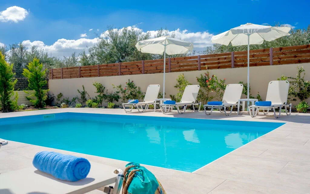 Beautiful, cosy villa "Lucas", semi-detached, renovated in 2019. In the centre of Melidoni, in a sunny position, excellent location: right in the centre but still quiet, 10 km from the beach. Private: beautiful garden (fenced) with flowers and trees, courtyard, swimming pool with privacy (28 m2, depth 80 - 150 cm, 01.04.-31.10.). Patio, garden furniture, barbecue. In the house: air conditioning. Linen change 2 times per week. Towel change 2 times per week. Room cleaning 2 times per week (included). Motor access to 30 m from the house. Public parking 30 m on the road. Grocery 30 m, restaurant 100 m, bakery 30 m, café 100 m, sandy beach "Bali" 10 km, diving center 10 km. Marina 10 km. Nearby attractions: Melidoni Cave 2 km, Panormos 10 km, Arkadi Monastery 24 km. Please note: car recommended. Suitable for families, baby equipment on request (included). Groups of teenagers on request only.