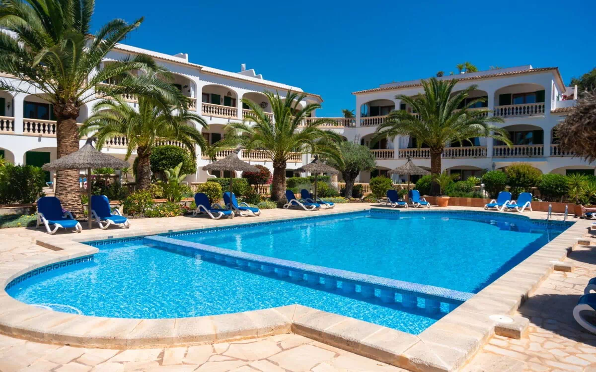 Resort "Bella Vista". 22 lejligheder i bygningen. 400 m fra bymidten af Cala Santanyi, ved bykanten, 4 km fra centrum af Santanyi, 18 km fra bymidten af Campos, 300 m fra havet. Til medbenyttelse: velplejet have med planter og blomster, pool (12 x 6 m, Sæsonbestemt tilgængelighed: 01.Jan. - 31.Dec.). Børnepool, udendørs brus, terrasse, legeplads, offentlige parkeringspladser på vejen. Fødevarebutik, restaurant 400 m, busstoppested "Cala Santanyi" 1.5 km, sandstrand "Cala Santanyi" 300 m.