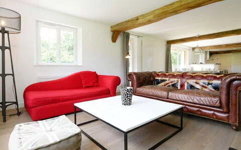 "La maison (QTV400)", 5-room house 160 m2 on 2 levels. Bright, tasteful furnishings: living/dining room with open-hearth fireplace, dining table and satellite TV. Exit to the terrace. Open kitchen (oven, dishwasher, 3 induction hot plates, refrigerator, toaster, water boiler, microwave, freezer, electric coffee machine). Sep. WC. Upper floor: 2 rooms with sloping ceilings, each room with 1 french bed. 1 room with sloping ceilings with 1 french bed (160 cm). 1 room with sloping ceilings with 1 french bed (160 cm), shower. Shower/WC. Electric heating. Parquet floors. Terrace. Terrace furniture, barbecue (portable), deck chairs (4), box-room. Facilities: washing machine, iron, children's high chair. Internet (WiFi, free). Please note: non-smoking house.
