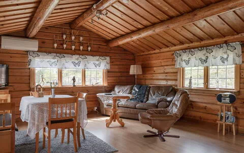 Komfortabelt træhus "Bunn Lappland". 17 km fra bymidten af Gränna, 5 km fra centrum af Bunn, 39 km fra bymidten af Jönköping, ved bakke, 200 m fra søen, i en blind vej, i det grønne. Mole. Til alene benyttelse: uberørt grund 1'200 m2 (indhegnet) med græsmark. Rodbåt, parkeringsplads (for 2 biler) på grunden. Indkøbsforretning 12 km, supermarked 39 km, togstation "Jönköping" 39 km, færge "Helsingborg" 280 km, sandstrand "Bunn" 5 km, havet Bunn 5 km.
