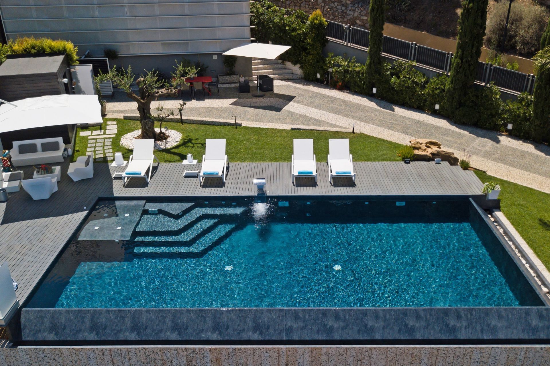 - infinity pool med panoramaudsigt (11 x 5 meter, maksimum dybde: 1,40 meter), boblebad og vandfald