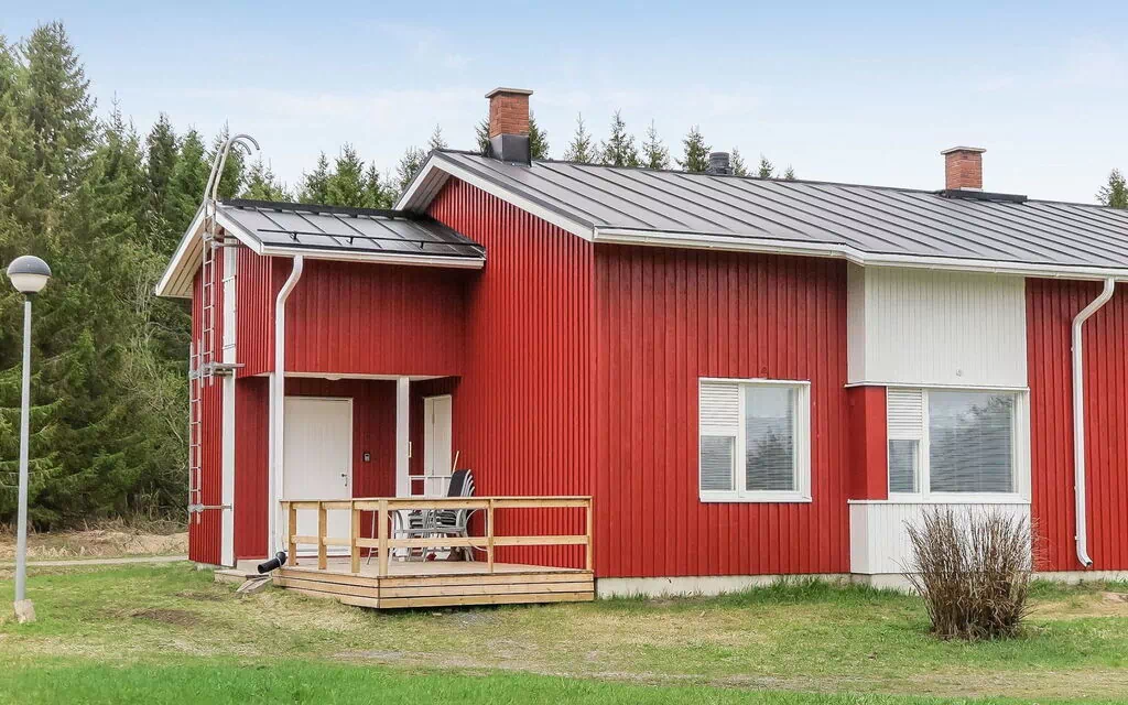 Wooden semi-detached apartment, built in 1989. Living room with sofa bed, kitchen, 2 beds in bedroom, sauna, washroom/WC, open porch and storeroom.