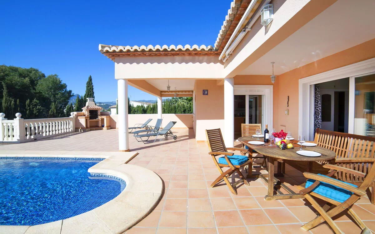 Beautiful, comfortable villa "Soleme". In the resort 5.5 km from the centre of Calpe, in a quiet, sunny position residential area (villas), area with little traffic, 1.4 km from the sea, 1.4 km from the beach. Private: property (fenced), beautiful garden, swimming pool (8 x 4 m, 01.01.-31.12.) with internal staircase. Terrace, barbecue. Grocery 1 km, supermarket 1 km, restaurant 1 km, café 1.4 km, sandy beach "Playa La Fustera" 1.4 km (small). Sports harbour 1.8 km, golf course 7.8 km, sailing school 1.8 km. Nearby attractions: Aqualandia, Mundomar, Terra Mítica, Terra Natura, Benidorm Palace (Benidorm), Les Fonts de l'Algar, Castillo de Guadalest.