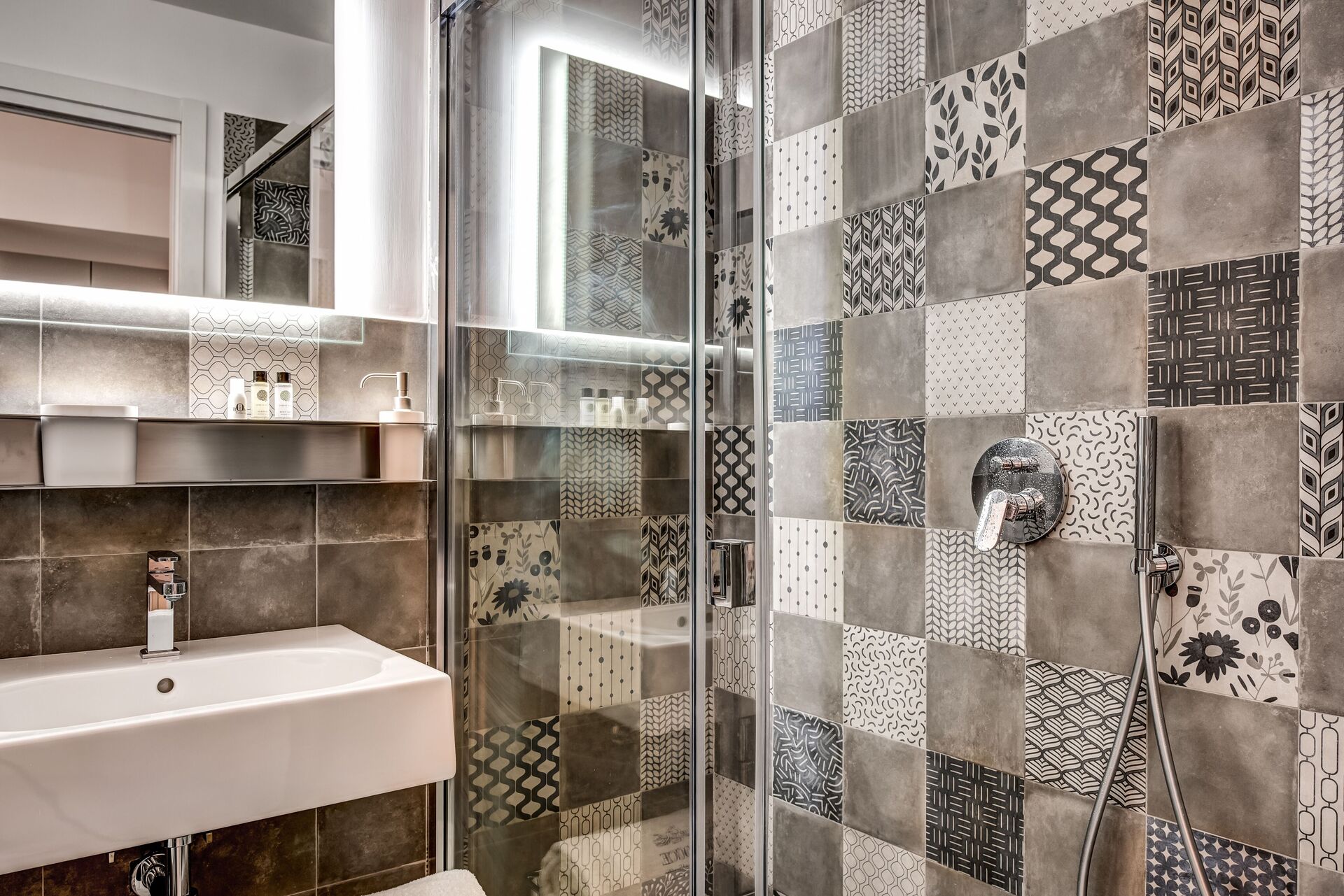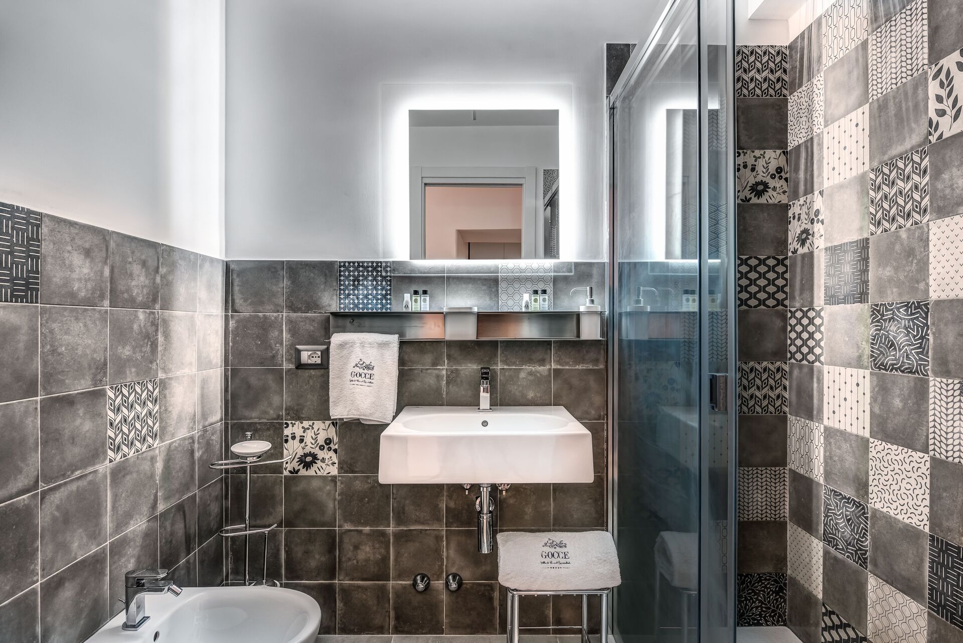 Badeværelse: vask, wc, bidet, bruser.