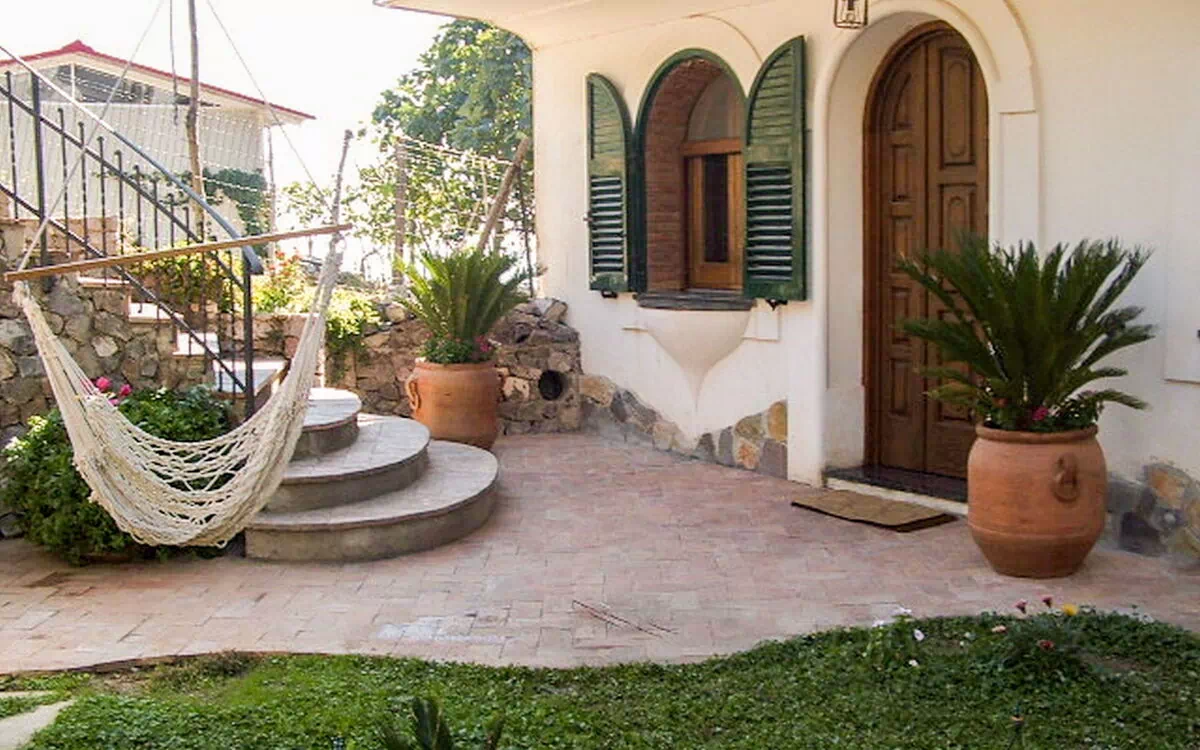 Agerola 15 km fra Amalfi: Rustikt, enkelt enfamiliehus "Path of the Gods", omgivet af træer, græsmarker, marker og vingård. Uden for byen, i distriktet Sentiero degli Dei, isoleret, rolig, høj beliggenhed, 10 km fra havet, 10 km fra stranden, i det grønne. Til alene benyttelse: terrasse, terrasse, havemøbler, grill. Skift af linned (yderlige ekstras). Udskiftning af håndklæder (yderlige ekstras). Rengøring af lejlighed muligt (ekstra). Morgenmad efter aftale (ekstra). 1 km gangsti til huset. Offentlige parkeringspladser 1 km på vejen. Indkøbsforretning 2 km, restaurant 2 km, busstoppested 2 km. Nærliggende attraktioner: Amalfi Coast 10 km, Capri, Sorrento 20 km, Napoli 60 km, Ischia, Pompei 35 km. Vandrestier Sentiero degli Dei. Bemærk venligst: velegnet for familier. Salg af lokale gårdprodukter. Objoktnummer IT6082.105.1 er beliggende på samme grund.
