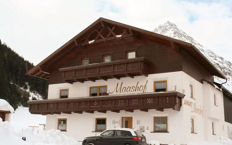 Hyggeligt hus "Apart Maashof", 1'600 meter over havets overflade, på 3 etager. 3 lejligheder i ejendommen. 600 m fra bymidten af Galtür, ved bykanten, rolig beliggenhed, 3 km fra skiområdet. I huset: skirum, skistøvletørrer. Parkeringsplads på grunden. Supermarked 300 m, restaurant 400 m, bageri, café 600 m, busstoppested 150 m, banegård 30 km. Skilift 3 km, skipiste 3 km, skiudlejning 600 m, skibusstoppested 80 m, skiskole 600 m, langrendsløjpe 200 m. Kendte skiområder nås nemt: Ischgl 10 km.