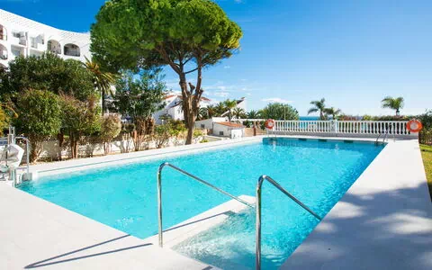 Nerja: Flerfamiliehus "Carabeo". I bymidten fra Nerja, 50 m fra havet, 50 m fra stranden, krydse vejen. Til medbenyttelse: liggeplæne, pool kantet (10 x 5 m, 135 - 180 cm dyb, Sæsonbestemt tilgængelighed: 15.Apr. - 30.Okt.). Brus/toilet i poolområdet. I huset: elevator. Parkeringsplads (begrænset antal) på grunden. Indkøbsforretning, fødevarebutik 50 m, supermarked 1 km, indkøbscenter 20 km, restaurant, bar, bageri, café 50 m, fodgænger zone 100 m, cykeludlejning 1 km, busstoppested 200 m, banegård "Malaga", sandstrand "Burriana" 50 m, dykkercenter 300 m. Lystbådhavn 18 km, marina 18 km, golfbane (28 hul) 22 km, surfskole 18 km. Nærliggende attraktioner: Cueva de Nerja, Tres Culturas Frigiliana, Auqavelis, Museo de Nerja, Museo del Vino en Cómpeta, Castillo de Almuñecar. Kendte skiområder nås nemt: Sierra Nevada. Vandrestier Sierra Tejeda, Sierra Almijara, Sierra Alpujarras. Ejeren accepterer ikke nogen ungdomsgrupper. Bemærk venligst: Af- og pålæsning af bagage er mulig ved ferieboligen.