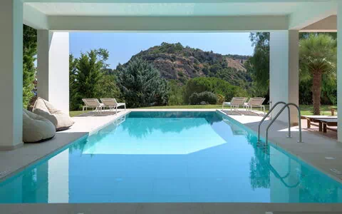"Ixian Vista", 6-værelse-villa 460 m2 på 3 etager. Rummelig og lys, pæn og moderne indrettet: åben stue/spisestue med spisebord og sat-TV (fladskærms TV). Åbent køkken (ovn, opvaskemaskine, 4 keramiske kogeplader, Brødrister, kedel, mikroovn, elektrisk kaffemaskine, kogeø). Særskilt toilet. Klimaanlæg. Nederste etage: åben stue/soveværelse med 1 dobbelt sovesofa og sat-TV (fladskærms TV). Udgang til have, til pool. 1 dobbeltværelse med 2 senge og brus/WC. Udgang til have. 2 dobbeltværelse, alle værelser med 1 dobbeltseng. Udgang til altan. Lille kogeniche (Brødrister, kedel, elektrisk kaffemaskine). Klimaanlæg. Overetage: (trappe uden gelænder) 1 dobbeltværelse med 1 dobbeltseng og brus/WC. Udgang til altan. Bad/WC. Klimaanlæg. 2 stor altan. Grill. Flotte udsigt over havet og landskabet. Til benyttelse: vaskemaskine, strygejern hårtørrer. Internet (trådløs LAN [WLAN], gratis). 1145212