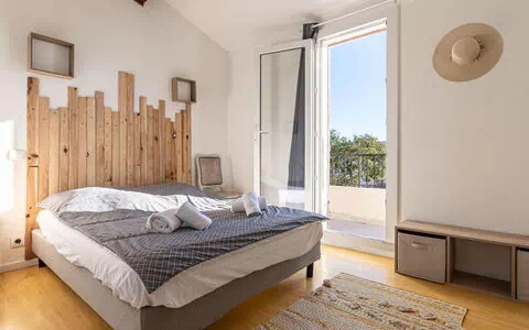 4-værelse-hus 90 m2 på 2 etager. Komfortabelt indrettet: stue/spisestue med åben kamin (kun til dekoration), TV (fladskærms TV), klimaanlæg. Udgang til terrasse. 1 værelse med 1 fransk seng (160 cm, længde 190 cm). Udgang til terrasse. Åbent køkken (ovn, opvaskemaskine, 4 Induktionskomfur, Brødrister, kedel, mikroovn, fryser, elektrisk kaffemaskine, Kapsler til kaffemasin (Nespresso) ekstra). Brus, særskilt toilet. El-opvarming. Overetage: 1 værelse med 1 fransk seng (160 cm, længde 190 cm). Udgang til altan. 1 værelse med 1 fransk seng (160 cm, længde 200 cm), klimaanlæg. Udgang til altan. Bad/brus/WC. Terrasse 20 m2, syd vendt. Havemøbler, grill, liggestole (6). Til benyttelse: vaskemaskine. Internet (trådløs LAN [WLAN], gratis). Bemærk venligst: ikke-ryger lejlighed. Brandalarm. 2A247001604A3