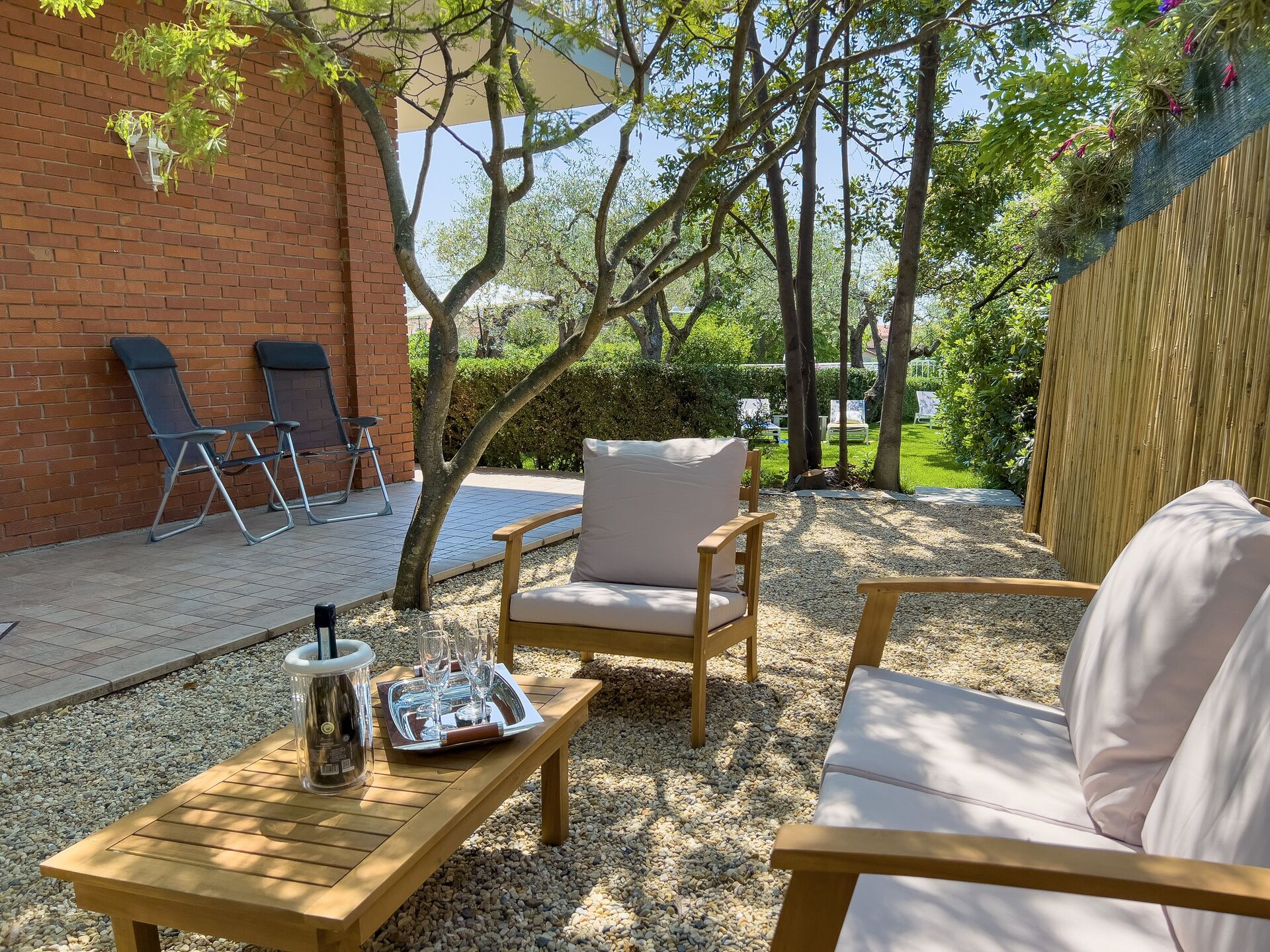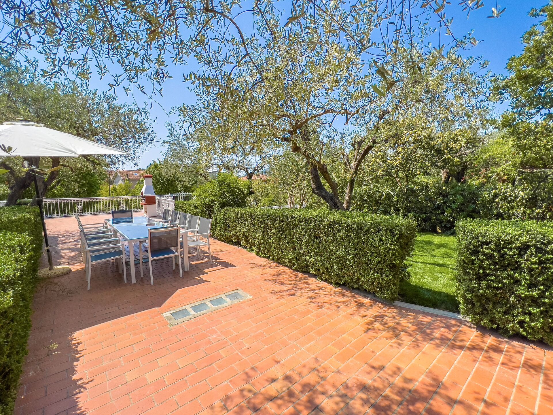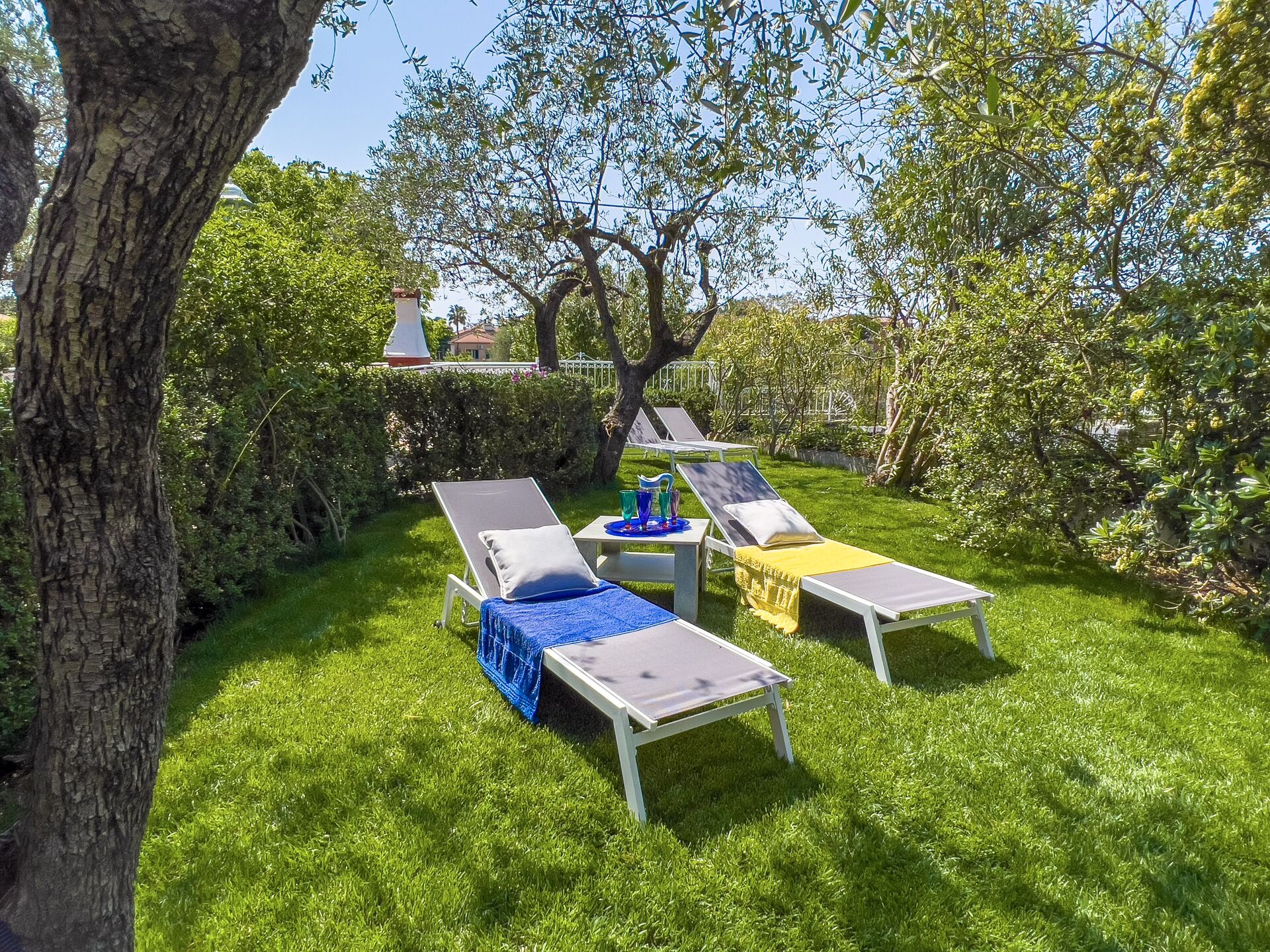 Omkring villaen er der en have til eksklusiv brug, bestående af en stor terrasse med bord, stole og grill, græsplæne og afslapningsområder.