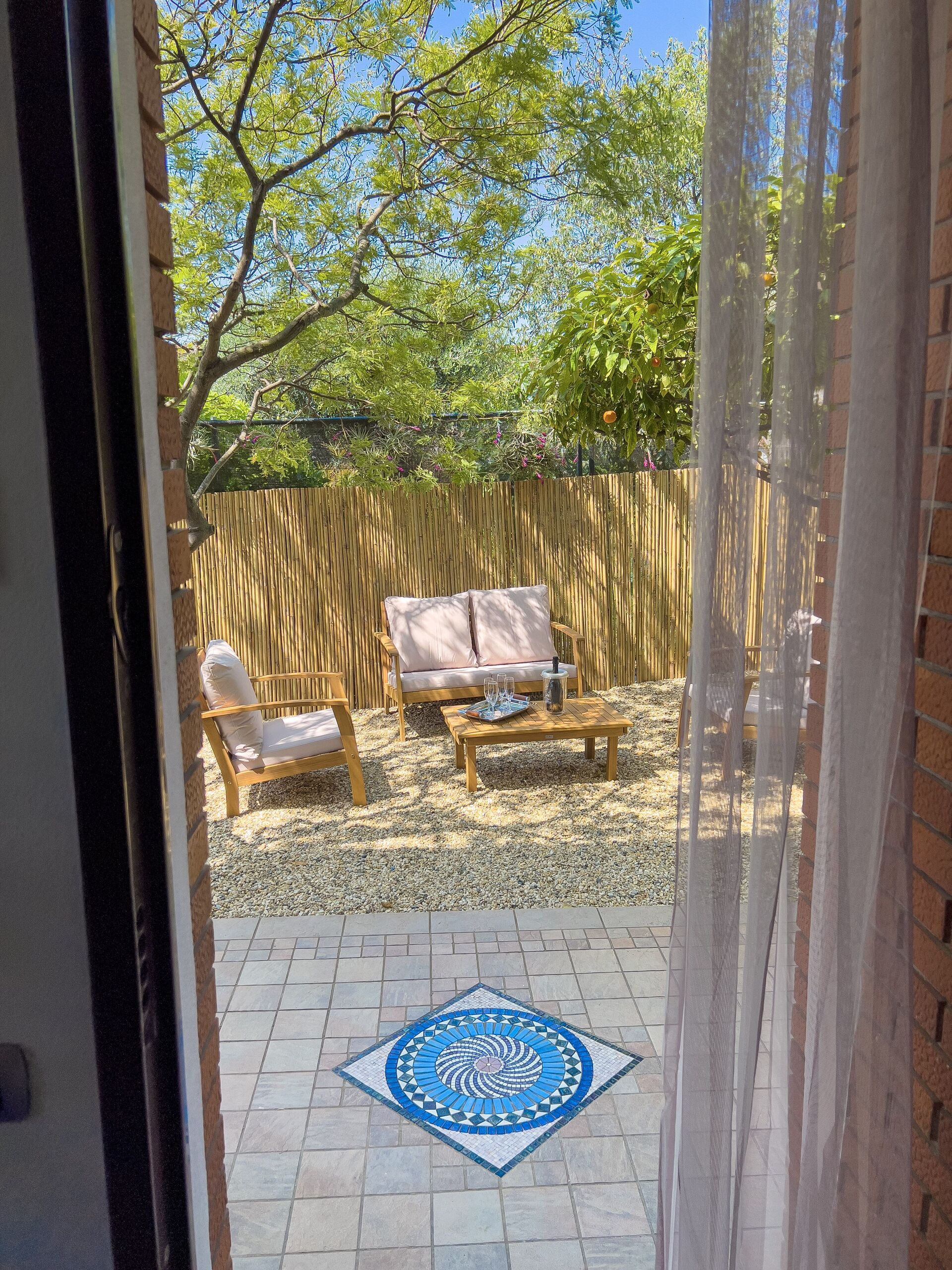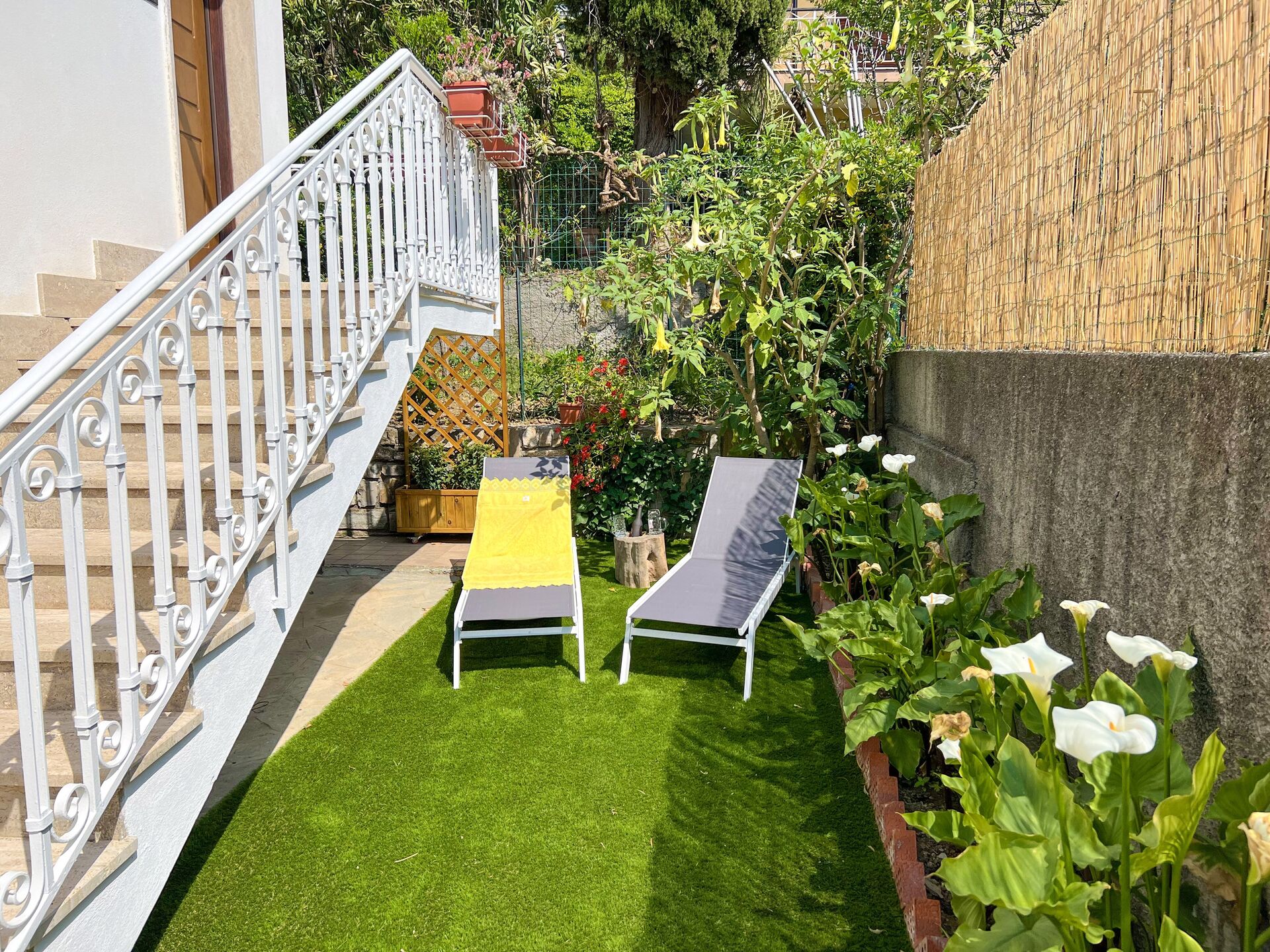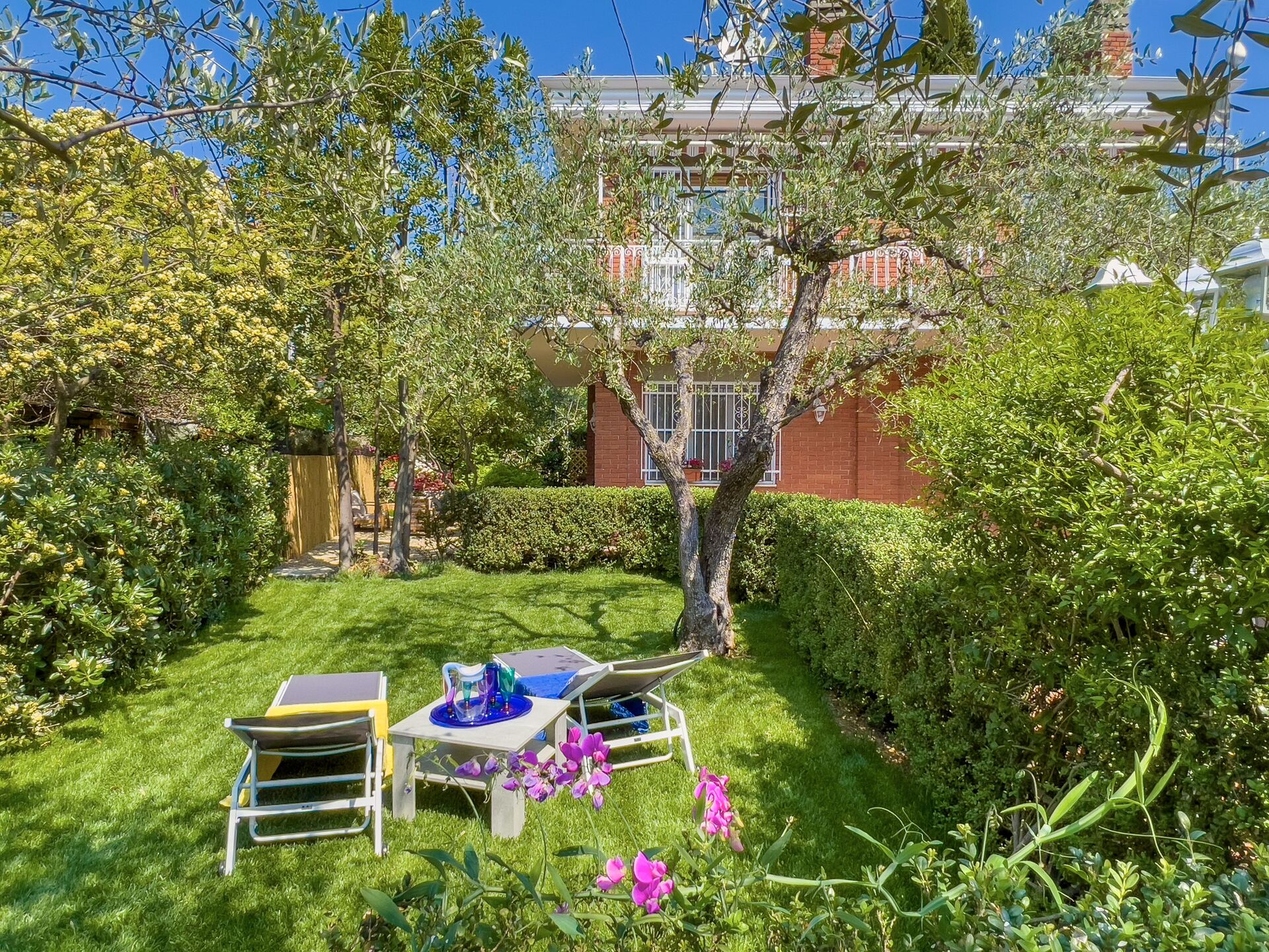 Omkring villaen er der en have til eksklusiv brug, bestående af en stor terrasse med bord, stole og grill, græsplæne og afslapningsområder.