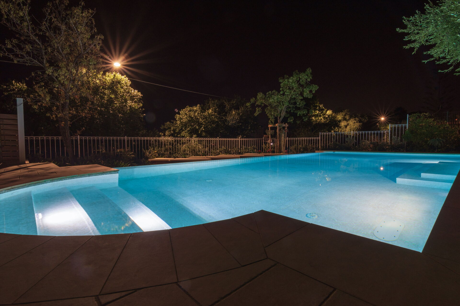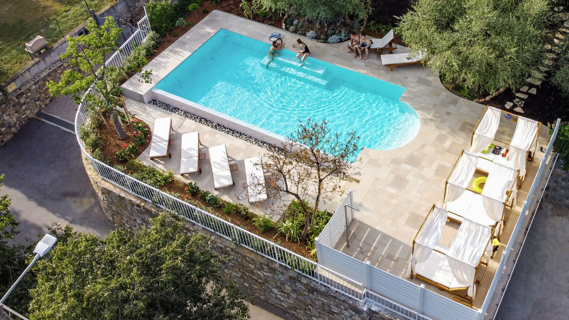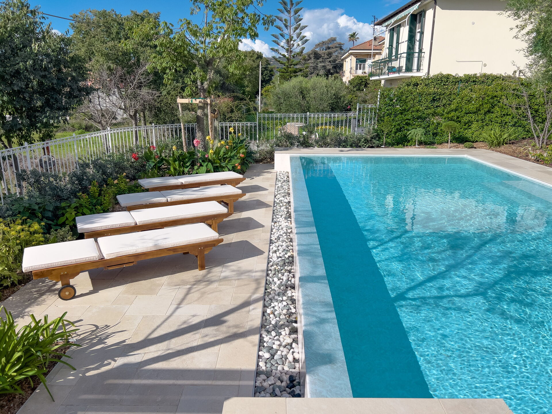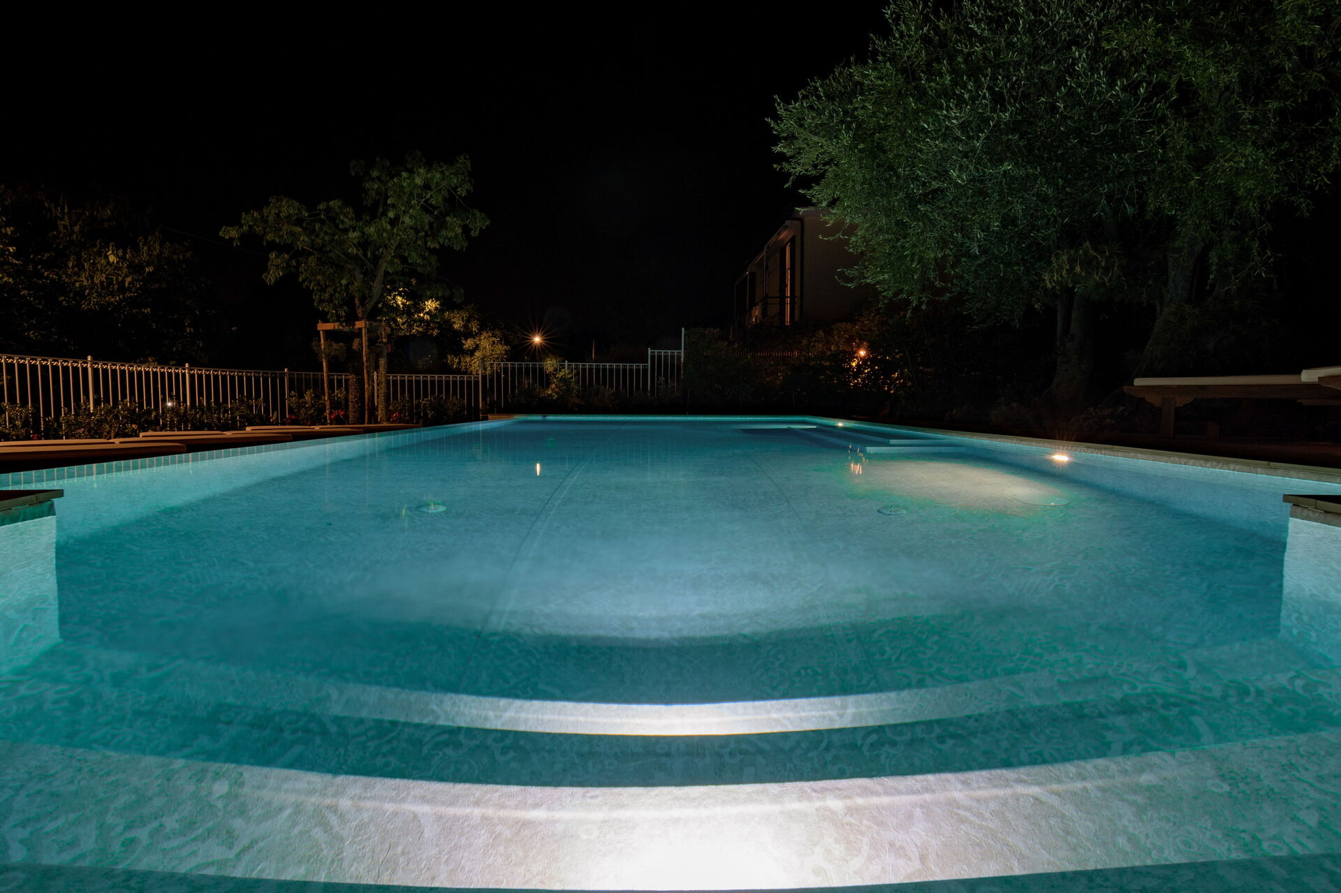 • a swimming pool measuring 10 x 5 metres, 135 centimetres deep. A Roman staircase allows entry to the pool, while, on the south side, the infinity waterfall guarantees clean water.
