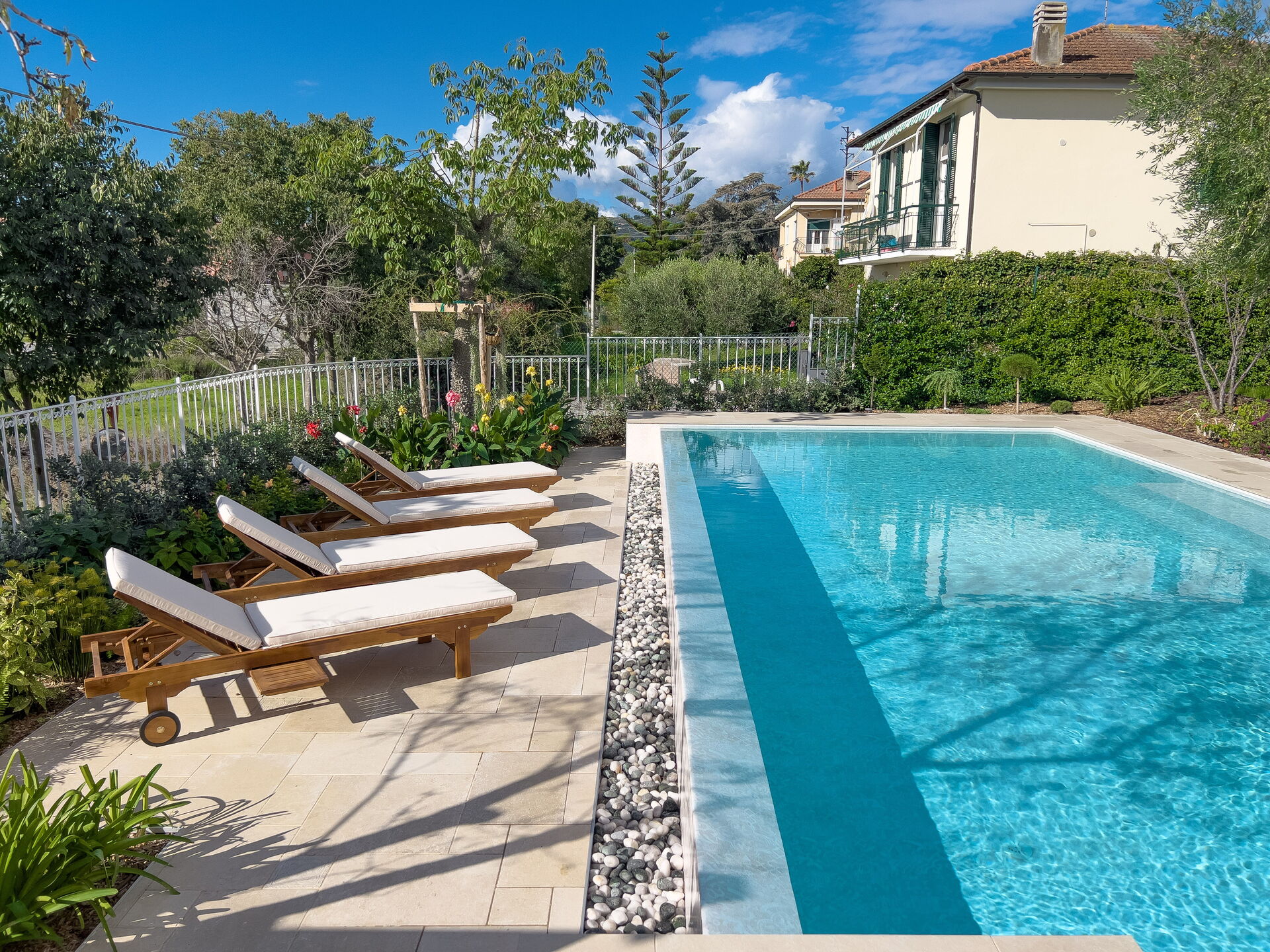 Villa med have og fælles opvarmet pool, nær strandene i Diano Marina.