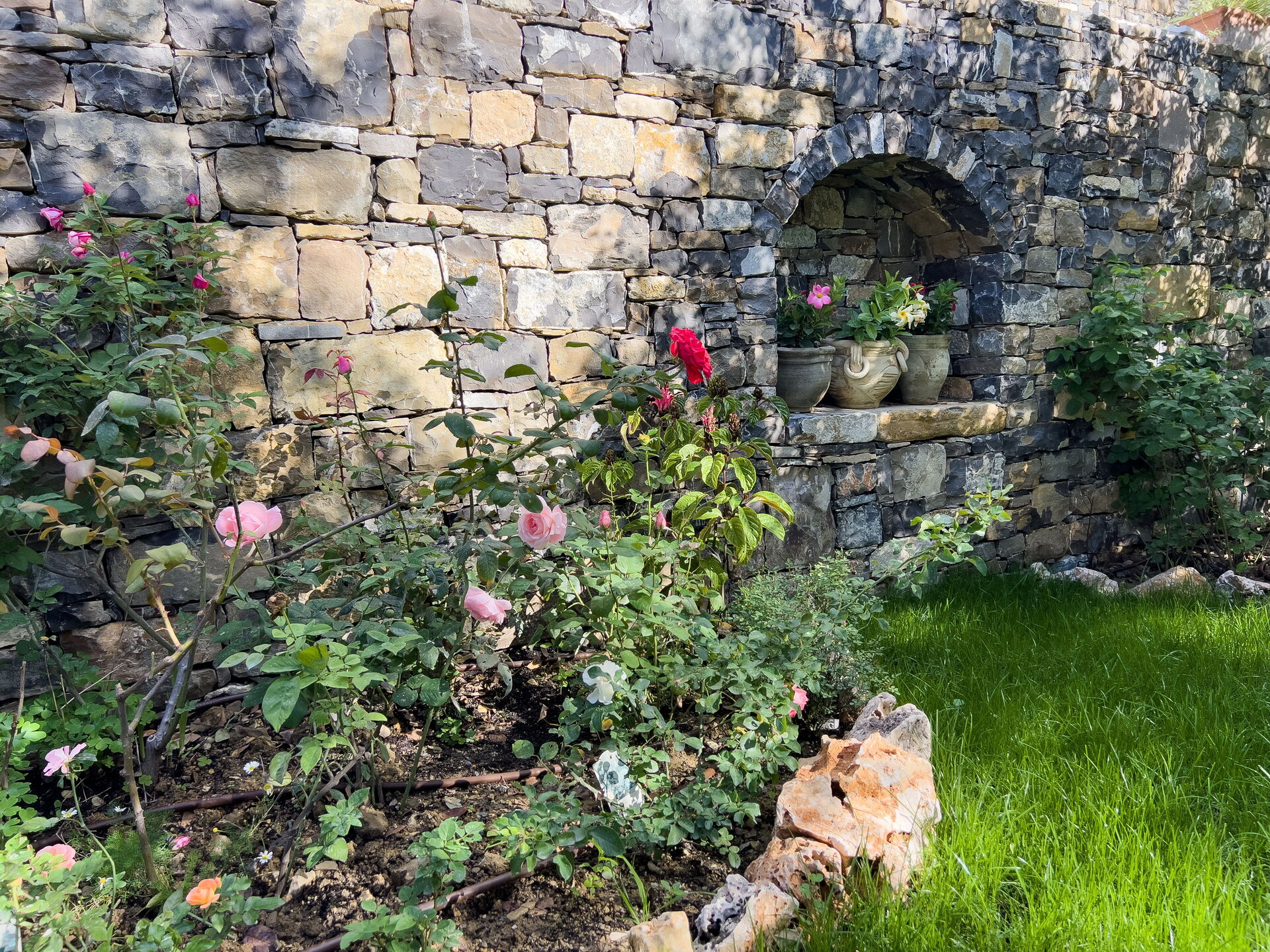 • temablomsterbede af acidofile planter, roser, iris, løg.