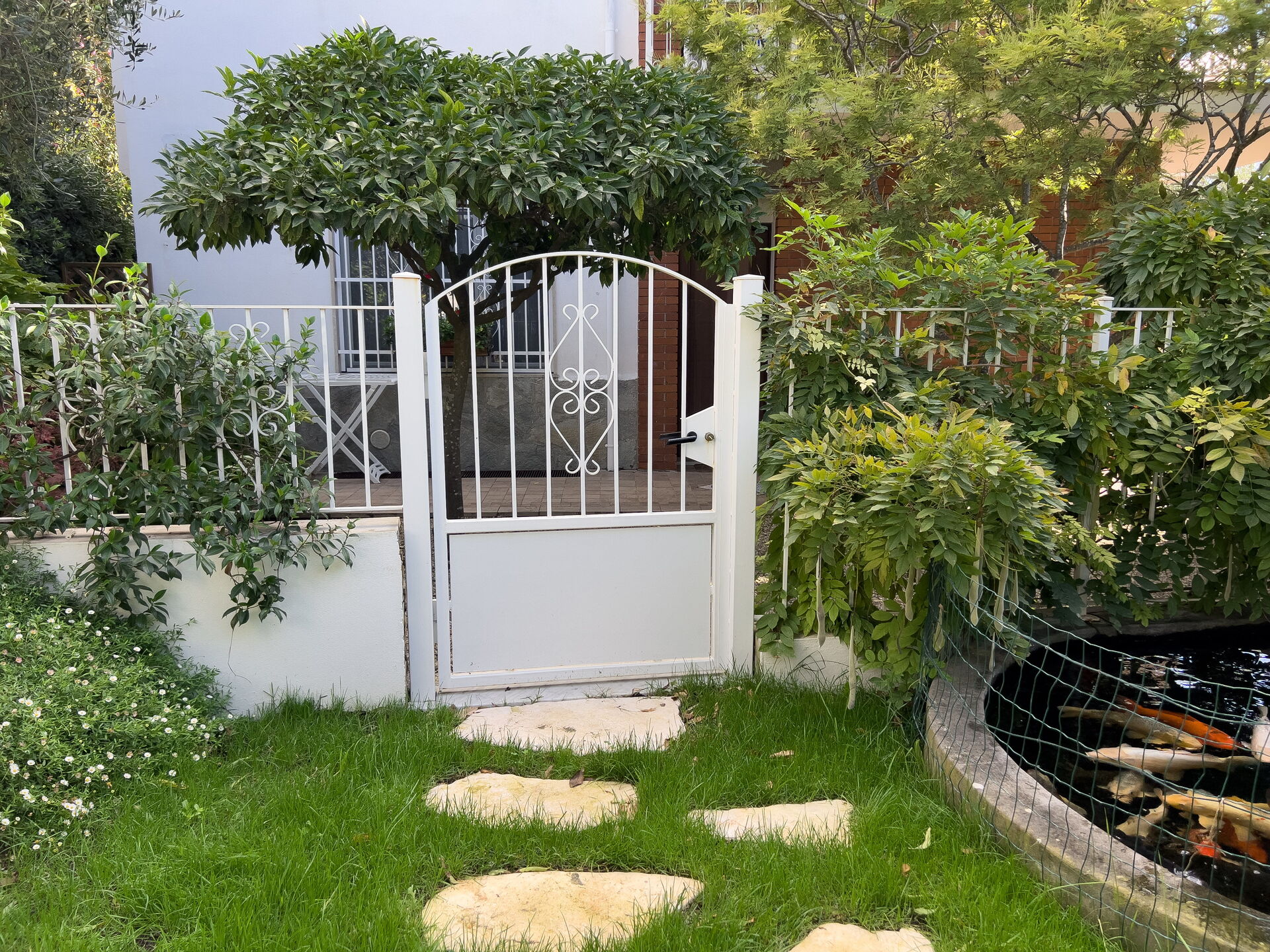 • a small botanical path. Beyond the pond, there is a secluded section of the garden with plants from all over the world. In this cool and shaded area there is a bistro table and chairs, a swing and a tuff fountain.