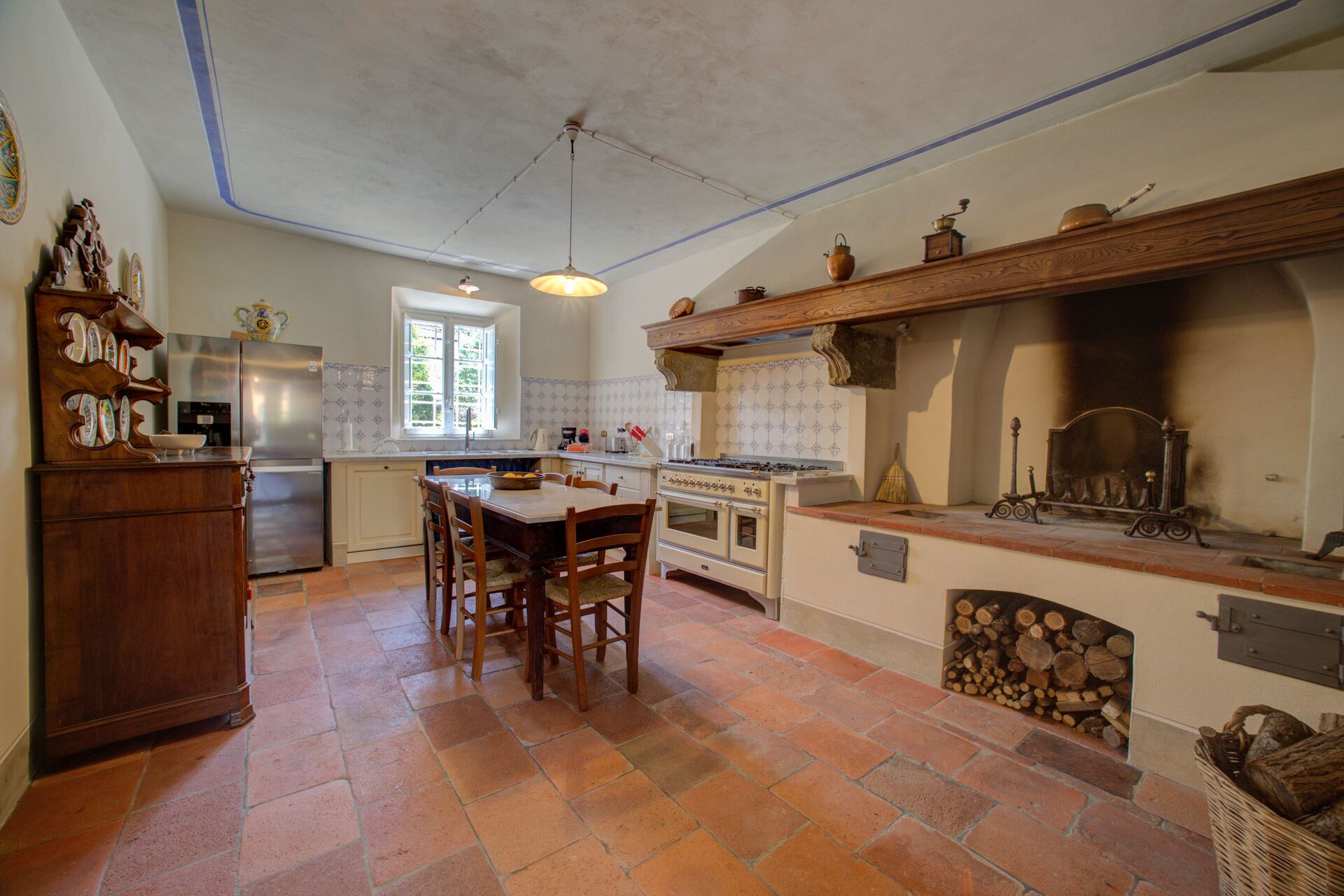 Køkken 1: opvaskemaskine, køleskab, kogeplader, brændeovn, ovn, italiensk kaffemaskine, WIFI internet, udgang til have.