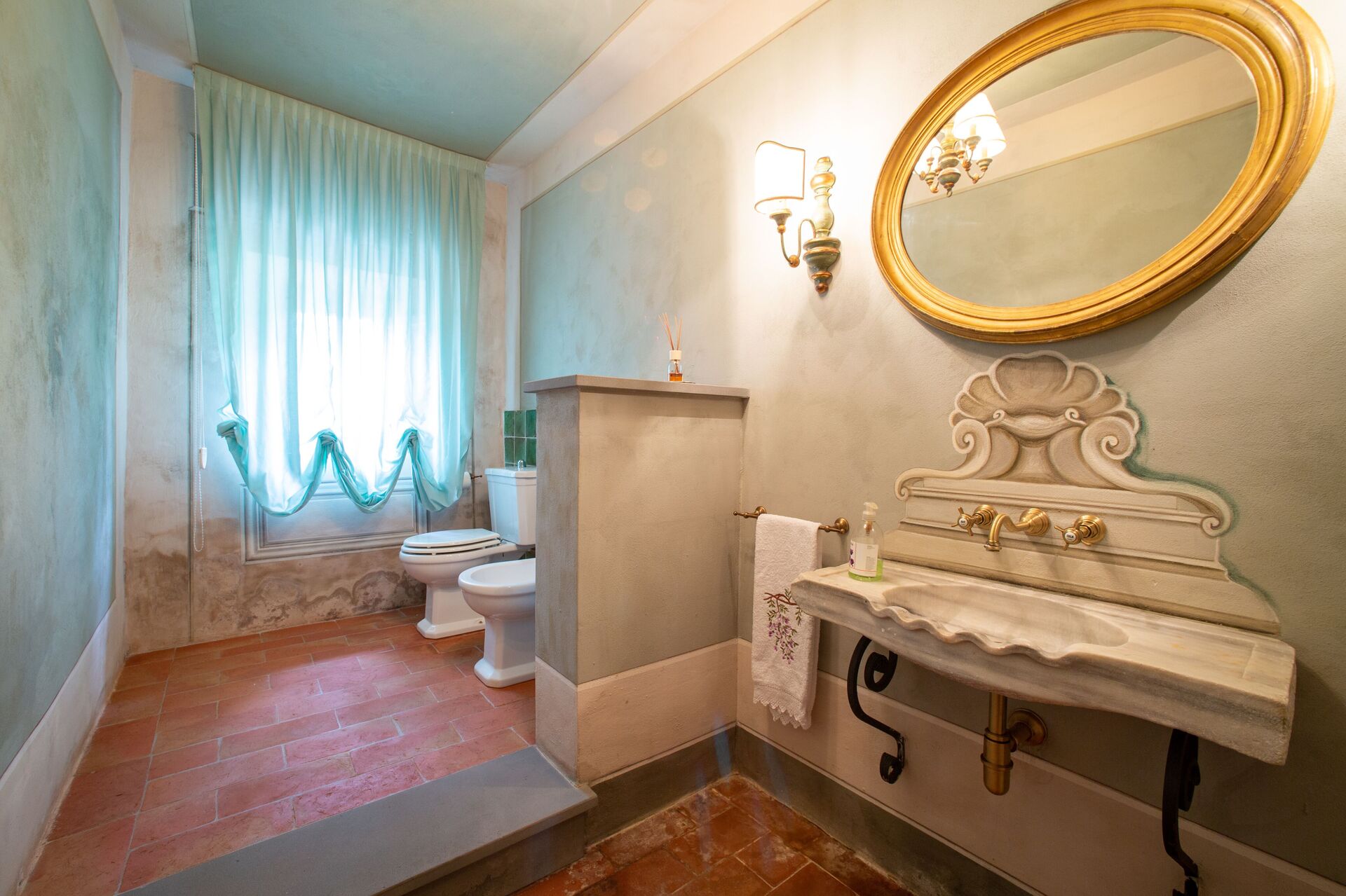Badeværelse 1: vask, wc, bidet, bruser.