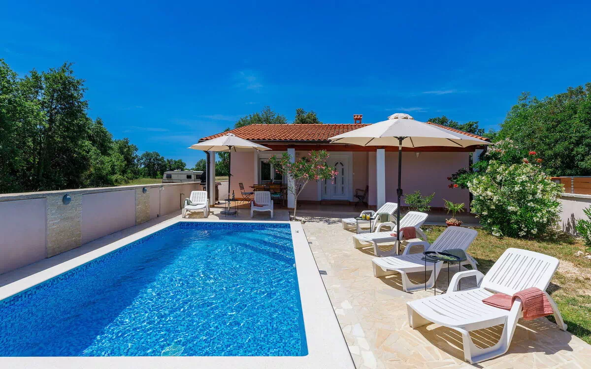 Pavićini 2 km fra Duga Uvala: Enfamiliehus "Maslina". 6 km fra bymidten af Marčana, rolig beliggenhed, 2.2 km fra havet, 2.2 km fra stranden, i det grønne. Til alene benyttelse: grund 400 m2 (indhegnet) med planter, pool kantet (6 x 3 m, 135 cm dyb, Sæsonbestemt tilgængelighed: 01.Maj. - 15.Okt.) med indetrappe. Udendørs brus, Underholdning af poolen af ejeren/gartneren. I huset: adgang til internet, vaskemaskine, tørretumbler. Tilkørsel til til huset (100 m natursti). Parkeringsplads (for 2 biler) ved huset på grunden. Indkøbsforretning 150 m, supermarked 18 km, restaurant 3 km, busstoppested 7.2 km, kiselstenstrand 2.2 km, klippestrand 2.2 km. Bemærk venligst: dele af huset er lukket og ubeboet. Flyveplads 17 km fra huset. Swimming pool med vandmassage.