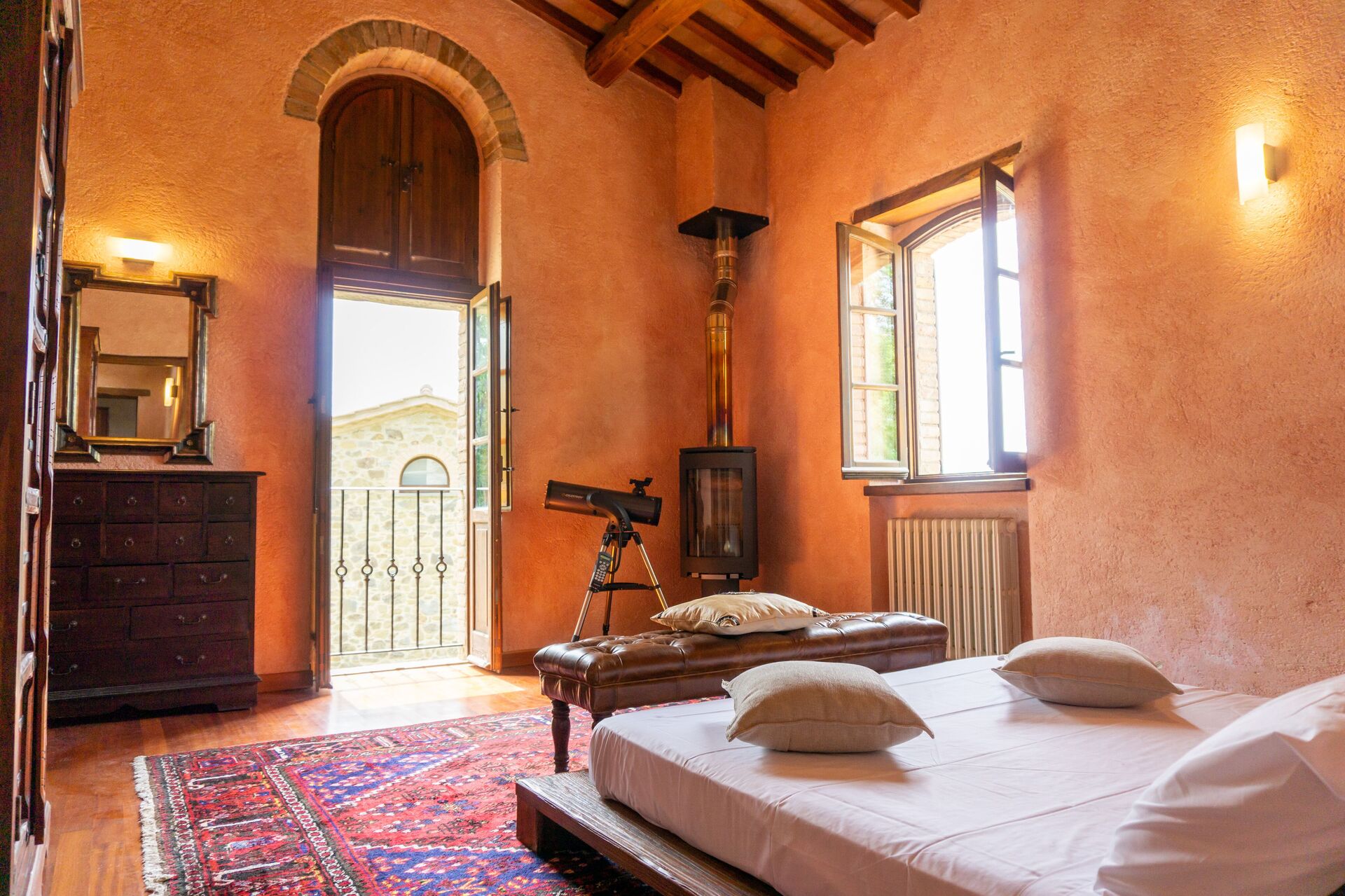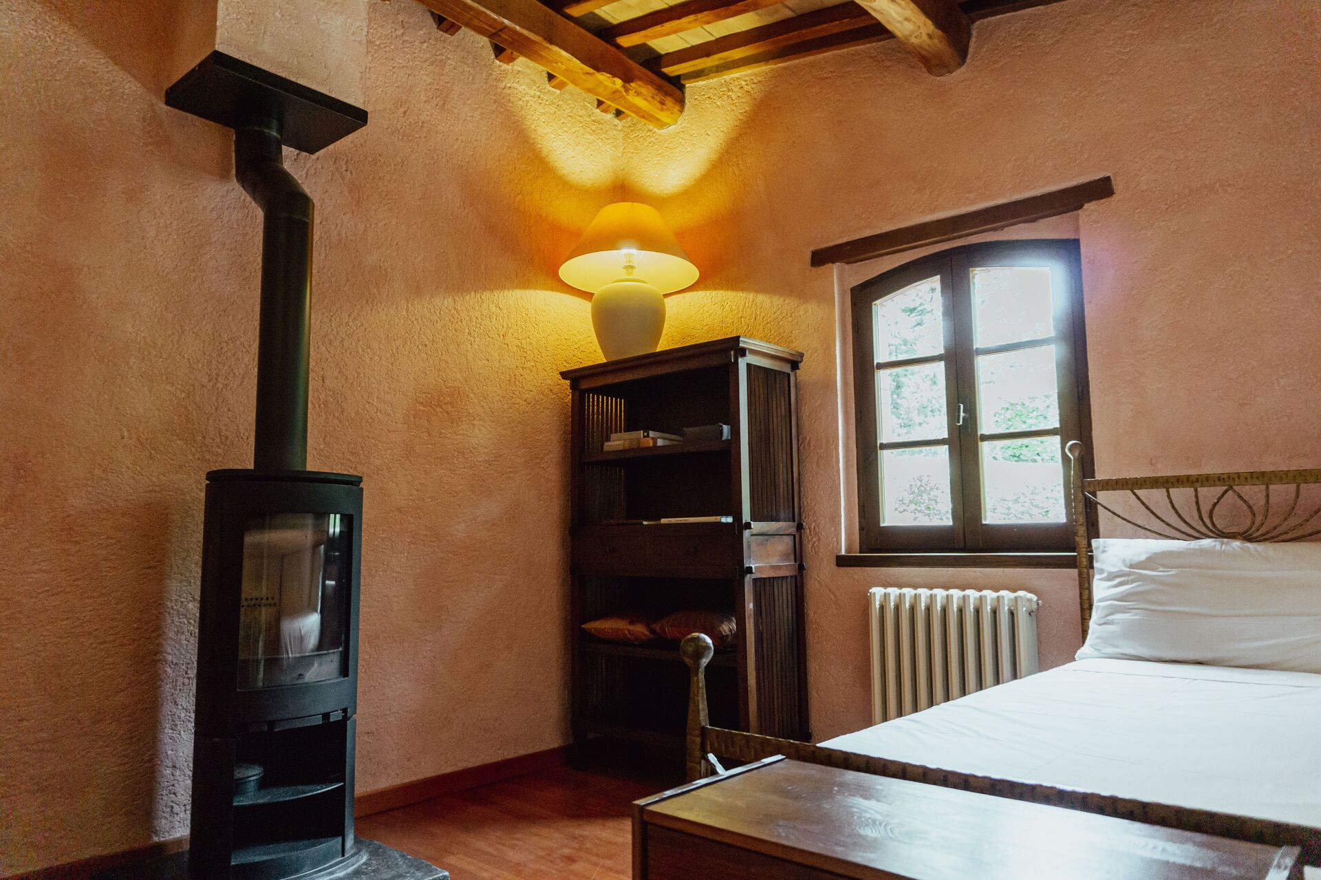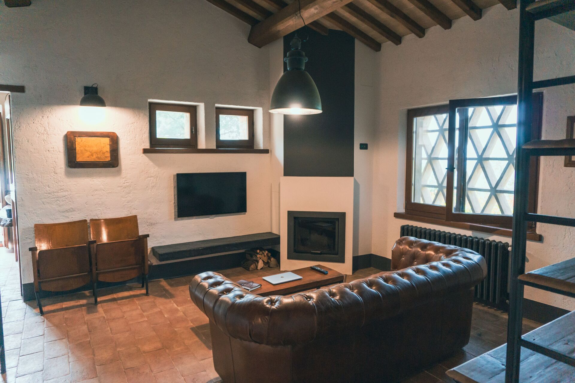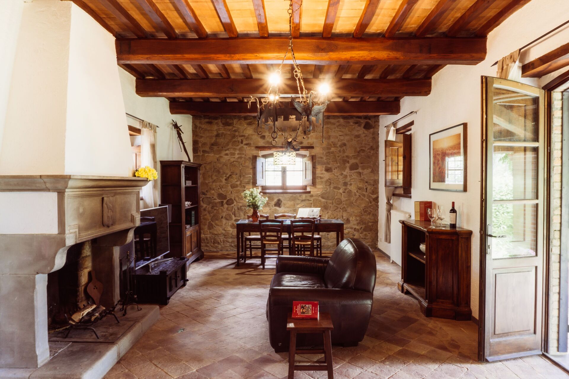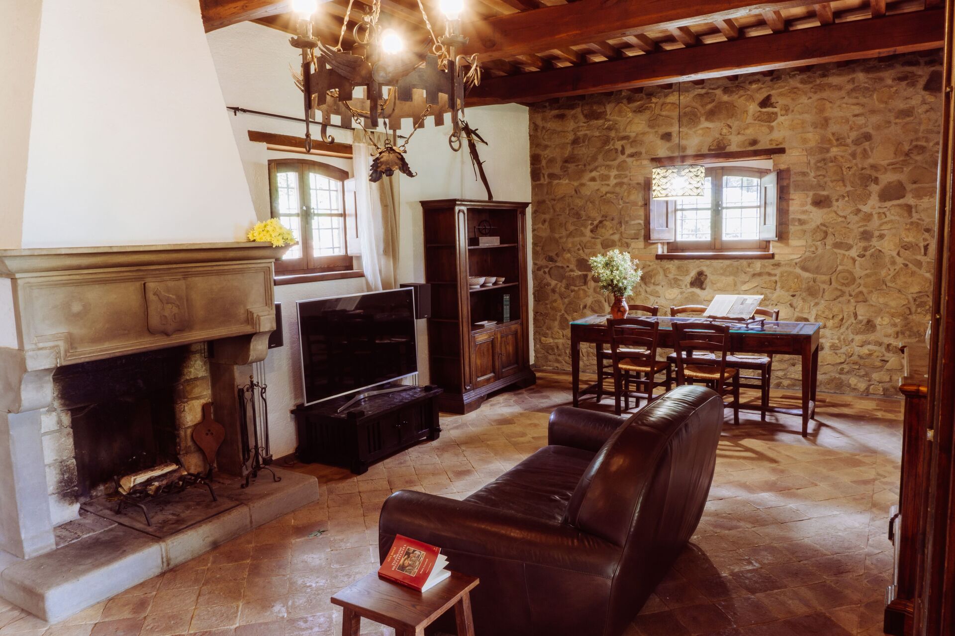 Stue: kamin, spisebord (personer: 8), dobbelt sovesofa, WIFI internet, klimaanlæg, tv.