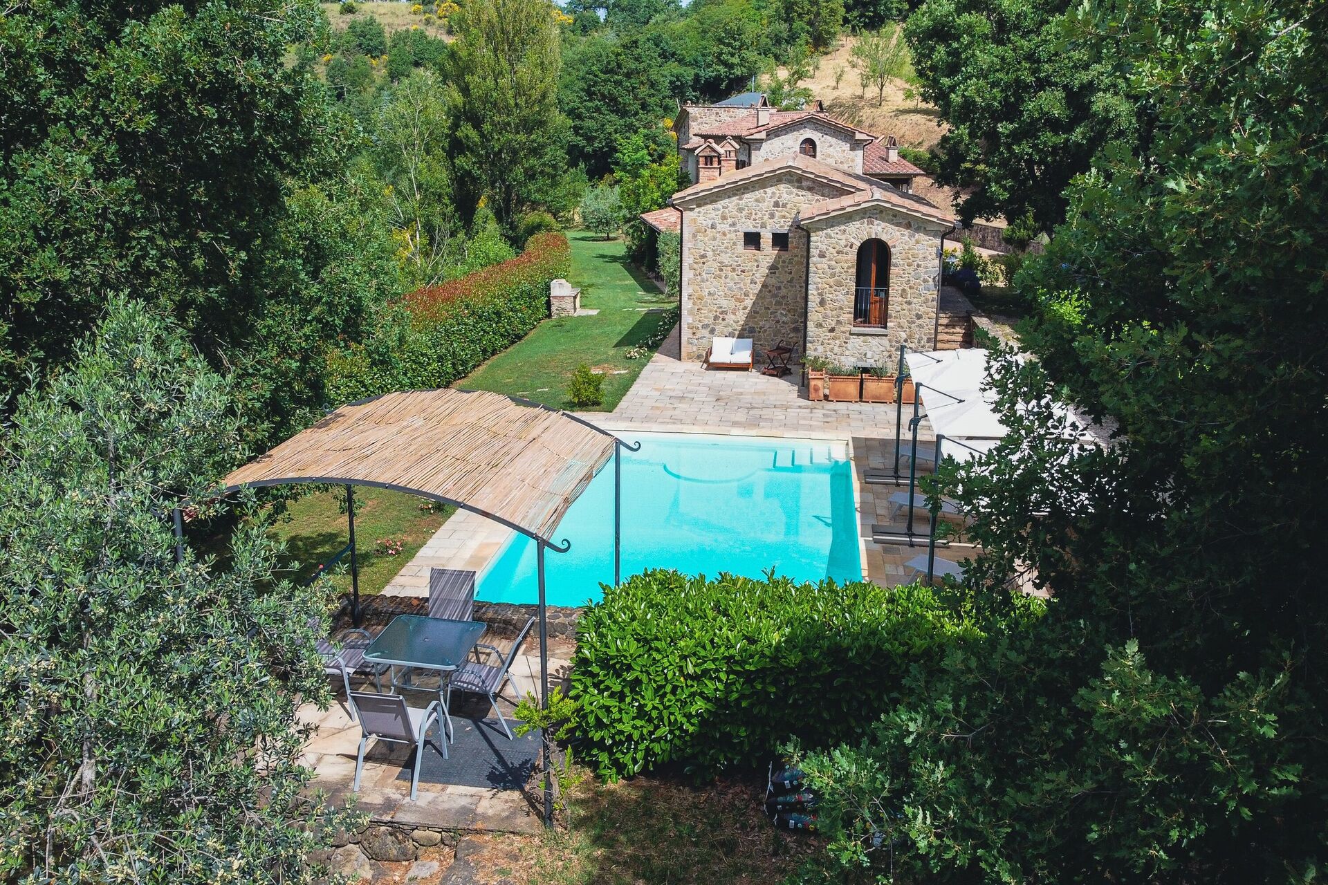 Når I ankommer, vil I blive budt velkommen af ejeren eller repræsentanten og I vil finde en flot ren og velholdt ejendom ideel til en fredelig ferie i Umbrien. Uanset hvordan I tilbringer dagene - med sightseeing, shopping, museumsbesøg eller bare ved at køre rundt på landet, så kan I slappe af med familie og venner ved poolen, når I kommer hjem, hvilket er en perfekt måde at afslutte endnu en dejlig dag på i Umbrien. At nyde et måltid med venner og familie er en kæmpe del af den italienske kultur. Benyt køkkenet til madlavning med lokale produkter, når du er på ferie. Køkkenet indeholder kaffemaskine, mikroovn, brødrister og køleskab, samt, masser af service og bestik til op til ti personer. Spis 'al fresco' som en ægte italienner. Den fuldt møblerede have er det perfekte sted for at nyde sit måltid, familien og det dejlige italienske vejr.