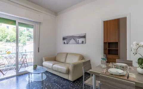 Flerfamiliehus på 4 etager. I bymidten fra Sanremo, 8 km fra bymidten af Bordighera, 15 km fra centrum af Ventimiglia, 700 m fra havet. Offentlige parkeringspladser 200 m på vejen. Fødevarebutik 150 m, supermarked 400 m, bar, bageri 50 m, cykeludlejning 500 m, busstoppested 200 m, togstation "Sanremo" 850 m, sandstrand 700 m. Marina 800 m, cykelvej 600 m. Nærliggende attraktioner: Casino 1 km, Piazza Bresca 800 m, Chiesa Russa 900 m, Teatro Ariston 700 m, Menton - France 20 km. Bemærk venligst: ingen elevator.